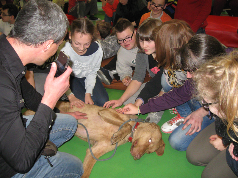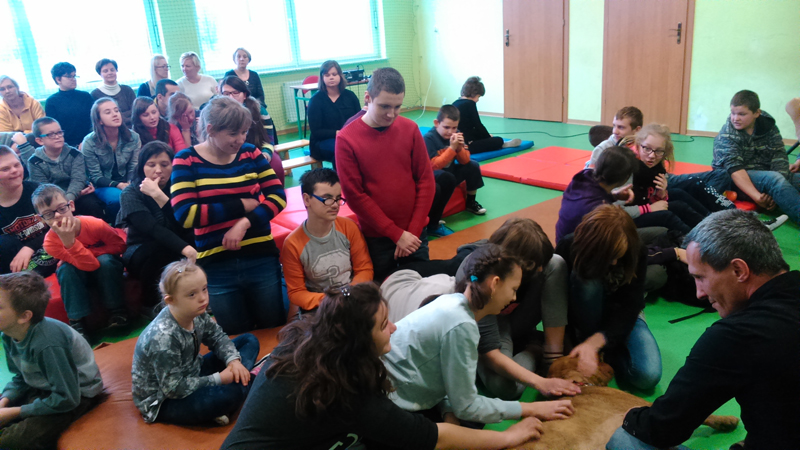 Z tej okazji wolontariusze z naszej szkoły zorganizowali 5 grudnia spotkanie z panem Sebastianem Grzywaczem, który odwiedził nas ze swoim psem przewodnikiem Rolkiem.
