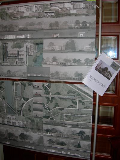 Projektowany budynek wejściowy dla obsługi gości pomieści hol z kasami, barek – kawiarnię, sklep z pamiątkami, galerię sztuki i zaplecze, zaś budynek reprezentacyjno – gościnny salę wielofunkcyjną na 50 miejsc, kawiarnię z holem i odpowiednie zaplecze. Na działce sąsiadującej z parkiem powstanie też zespół budynków zaplecza ogrodniczego.