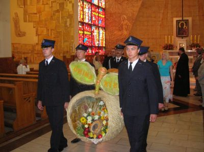 Już od godziny 11 przed kościołem św. Wawrzyńca w Sochaczewie zbierali się 27 sierpnia goście Dożynek Powiatowych 2006. Ze względu na tegoroczną suszę i zmniejszone plony dożynki tegoroczne huczne nie były. Przed Mszą Świętą na schodach kościoła koncertował zespołu pieśni i tańca ludowego „Masovia” z Płocka. Uroczystości rozpoczęło o godz. 12,30 złożeniem przed ołtarzem wieńców dożynkowych przez starostów dożynek - Janinę Sieradzką z Brzozowa (gmina Iłów) i Zdzisława Tomasiewicza - sołtysa wsi Koszajec (gmina Rybno) oraz delegacje gmin powiatu. Wieniec powiatowy przygotowali Sławomir Tomaszewski z Brzozowa i Waldemar Florczak z Nowych Mostek. Ta delegacja będzie reprezentowała powiat sochaczewski już 3 września podczas Dożynek Województwa Mazowieckiego w Wyszogrodzie.