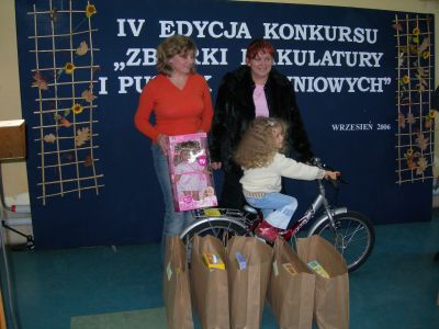 Indywidualnie rower i przepiękną lalkę za I miejsce otrzymała Kinga Tonderska z Przedszkola nr 6 za zebranie 2.020 kg makulatury. Drugie miejsce zajęła Katarzyna Szmidt z kl. I b Gimnazjum nr 1 – 2.014 kg, trzecie – Paweł Stępniak z kl. III a SP w Paprotni – 2.000 kg. Różnice były więc minimalne.