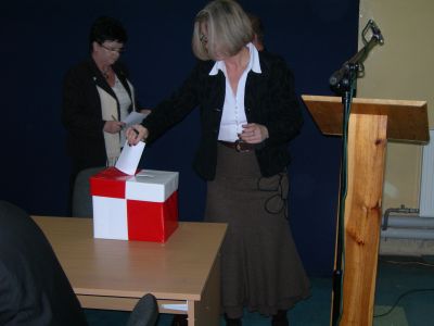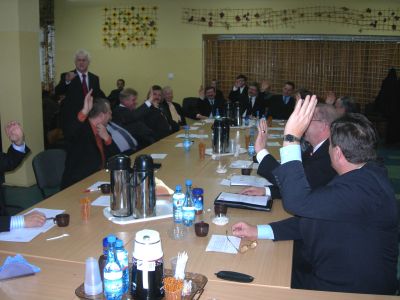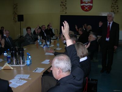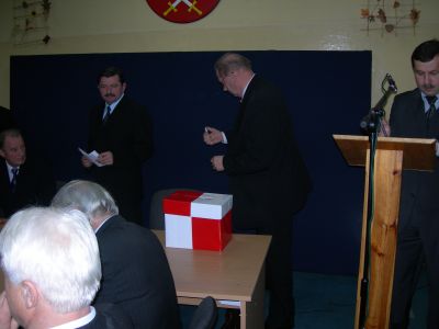 Na przewodniczącego rady Halina Pędziejewska zgłosiła kandydaturę dotychczasowego przewodniczącego A. Grabarka. Jak uzasadniała, osoba ta gwarantować będzie merytoryczność, obiektywizm i kulturę osobistą. Innych kandydatur nie było. Komisja skrutacyjna, w skład której weszli Jolanta Popiołek, Wiesław Domagalski i Zbigniew Pakuła, po zliczeniu głosów ogłosiła, że nowy przewodniczący otrzymał w tajnym głosowaniu 16 głosów „za”, dwoje radnych było przeciwnych, jeden wstrzymał się od głosu. Ze względu na dwa „vacaty” udział w sesji brało 19 radnych.