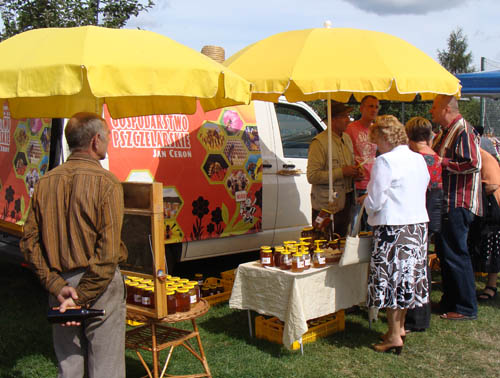Goście naszego festiwalu mieli w czym wybierać. Na pierwszym miodowym święcie swoje wyroby przedstawili m.in.: Powiatowe Koło Pszczelarzy w Sochaczewie oraz pszczelarze z Kampinosu, Łowicza, Izabelina i Puszczy Mariańskiej. Obok produktów pszczelich można było nabyć rękodzieło artystyczne. Swoje stoisko miał też Mazowiecki Ośrodek Doradztwa Rolniczego w Warszawie Odział w Bielicach, można było skosztować pysznego chleba ze smalcem przygotowanego przez piekarnię Tomasza Janiaka oraz podziwiać rękodzieło artystyczne.
