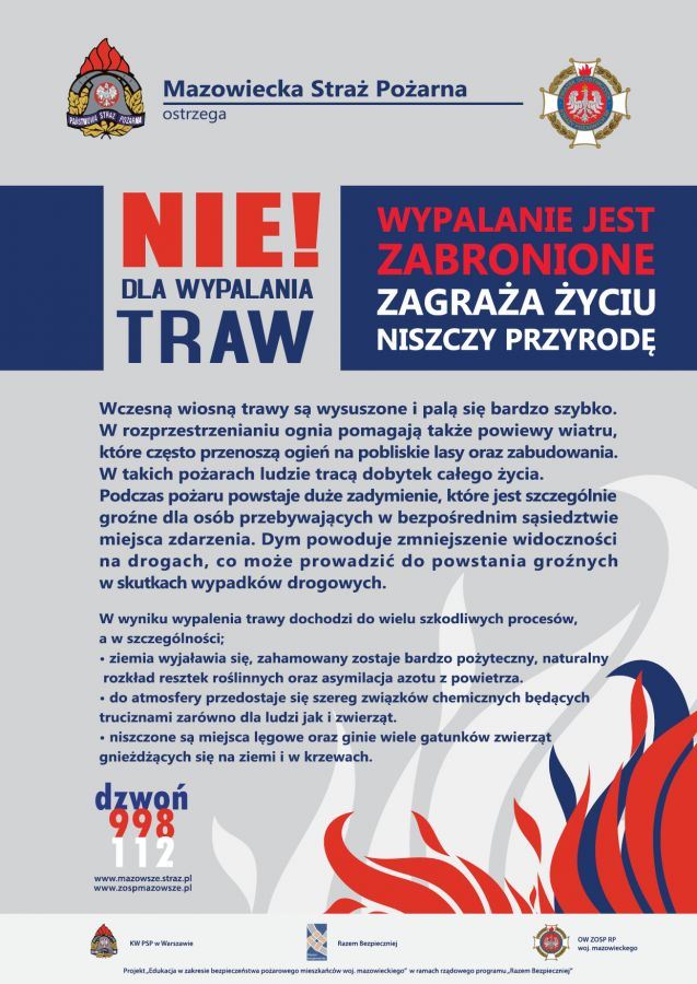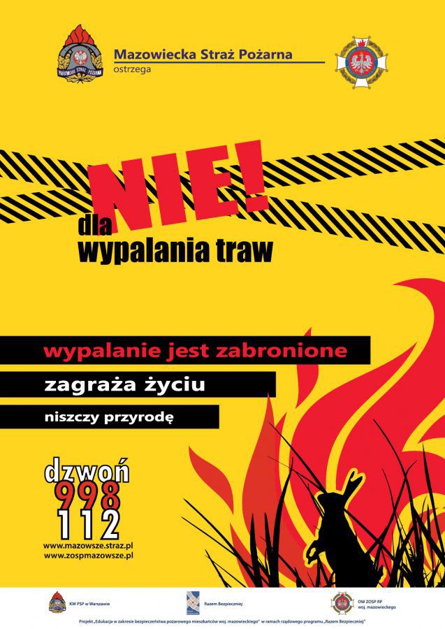 W związku z organizowaną pod patronatem Wojewody Mazowieckiego kampanią społeczną Państwowej Straży Pożarnej „NIE! Dla wypalania traw na Mazowszu”, strażacy wspólnie z partnerami projektu zaplanowali szereg działań m.in.: