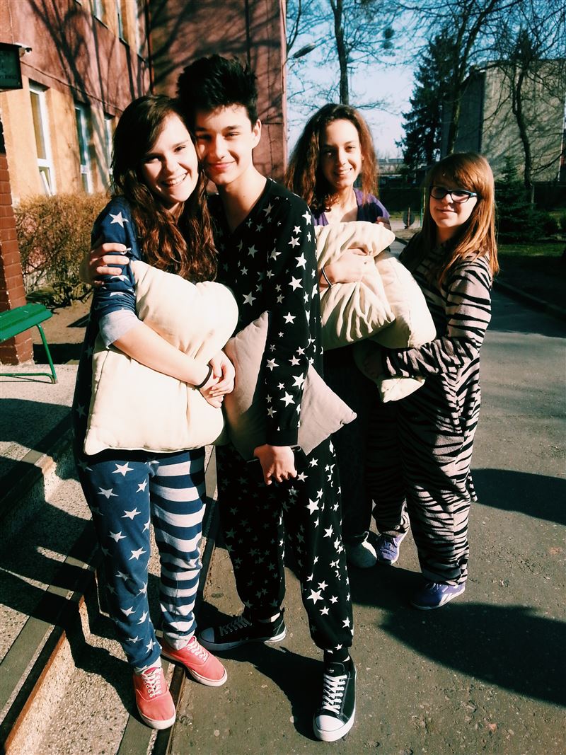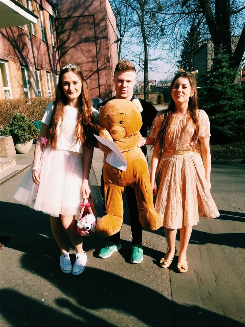 Ciekawym pomysłem, jakim swoją tradycję kultywuje już od wielu lat nasza szkoła, jest konkurs, rozstrzygany w środowisku uczniowskim Chopina, polegający na ciekawym i oryginalnym przebraniu, zaprezentowanym podczas lekcji i przerw. Sięgając pamięcią kilka sezonów wstecz, a także patrząc na piątkowe kreacje „Młodych Chopinów”, można śmiało rzec, iż niezwykle wybujała i bogata wyobraźnia, połączona ze zmysłem kreatorskim i ciekawie zaprezentowanymi innowacjami wybiegającymi naprzeciw współczesnym trendom modowym, nie opuszcza uczniów ZSO nawet na chwilę. Jak się okazuje, obok tęgich umysłów uczniów naszej szkoły, chłonących wiedzę w różnych dziedzinach, znajduje się także wielu przyszłych kreatorów mody, bądź scenarzystów teatralnych. Domniemać tak można na podstawie dzisiejszych przebrań, obrazujących postacie filmów animowanych, służb wojskowych czy przedmiotów codziennego użytku. Jak możemy zauważyć na załączonych zdjęciach, ograniczenia dotyczące stroju i przebrania nie istnieją, ale wystarczy jedynie stworzyć dobrą reakcję dwóch substratów: kilku skrawków potrzebnych materiałów z domieszką młodzieżowej wyobraźni. Co więcej, tradycja „przebraniowa” naszej szkoły skutecznie pozwala zapomnieć młodzieży o przyjętym powszechnie Dniu Wagarowicza przypadającym właśnie na 21 marca. Można by rzec więcej. Dzięki konkursowi w tym dniu wśród uczniów Chopina jak co roku można zaobserwować bardzo wysoką frekwencję wszystkich klas gimnazjalnych i licealnych. Dzięki pomysłowości oraz chęci rywalizacji młodzieży ZSO w pierwszy dzień wiosny wszystkie szkolne ławki są zajęte. Oczywiście tego dnia na lekcjach spotkamy się z nietuzinkowymi postaciami i nowymi wcieleniami uczniów. Poniżej na zdjęciach kilka przykładów, jak Chopin świętuje odejście zimy i wita dni słoneczne.