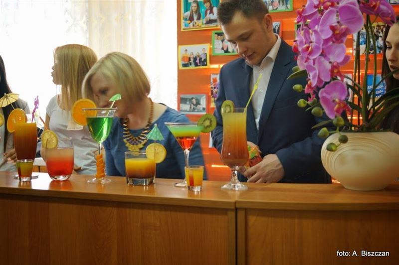 Na brak pracy przy swoich punktach promocyjnych nie mogli narzekać uczniowie Technikum. Na dolnym korytarzu oblegane było stanowisko technikum żywienia i usług gastronomicznych, technikum hotelarstwa oraz zasadniczej szkoły zawodowej kształcącej w zawodzie kucharz, gdzie gości częstowano pysznymi kolorowymi drinkami, ciasteczkami i kawą. Każdy mógł posmakować flambirowanych naleśników i słodkich mufinek z kremem. Na górnym korytarzu wyróżniało się kolorowe stoisko technikum organizacji reklamy i zabawnie ubrana grupa jego uczniów prezentująca efekty swej pracy. Ekonomiści, handlowcy i sprzedawcy prezentowali możliwości kasy fiskalnej oraz opowiadali o specyfice tych zawodów.