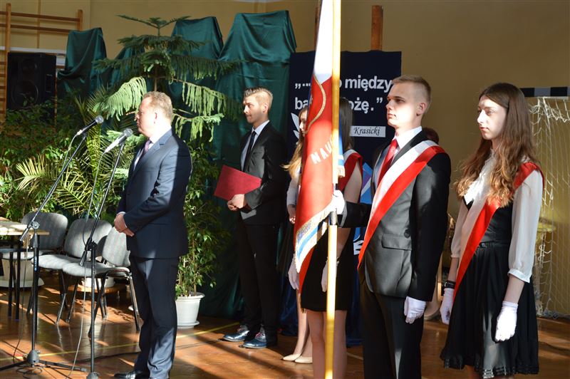 - Przyszliście tu jako szesnastoletnia młodzież, która wchodziła w nowy, nieznany świat. Dziś po trzech latach nauki, opuszczacie mury szkoły jako osoby dorosłe, dojrzałe, z bagażem zdobytej wiedzy – mówił wicestarosta Tadeusz Głuchowski. Życzył też maturzystom jak najlepszych wyników na maturze oraz zdobycia indeksów na wymarzonych kierunkach studiów.