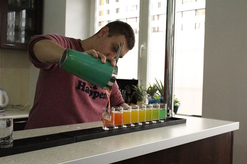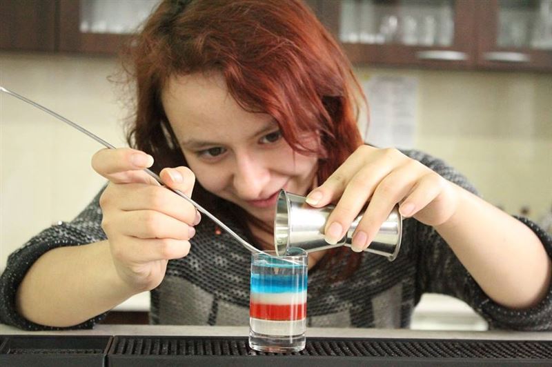 Na początku kwietnia odbywały się także inne, równie ciekawe zajęcia. Młodzież z technikum mogła wziąć udział w „Kursie barmańskim”, dzięki któremu poznała różne techniki mieszania alkoholi za pomocą blendera, shakera oraz sposób wstrząśnięte niemieszane. Poszczególne metody, odpowiednio zastosowane, nadają estetyczny wygląd drinka z zachowaniem standardów koloru, smaku i zapachu.