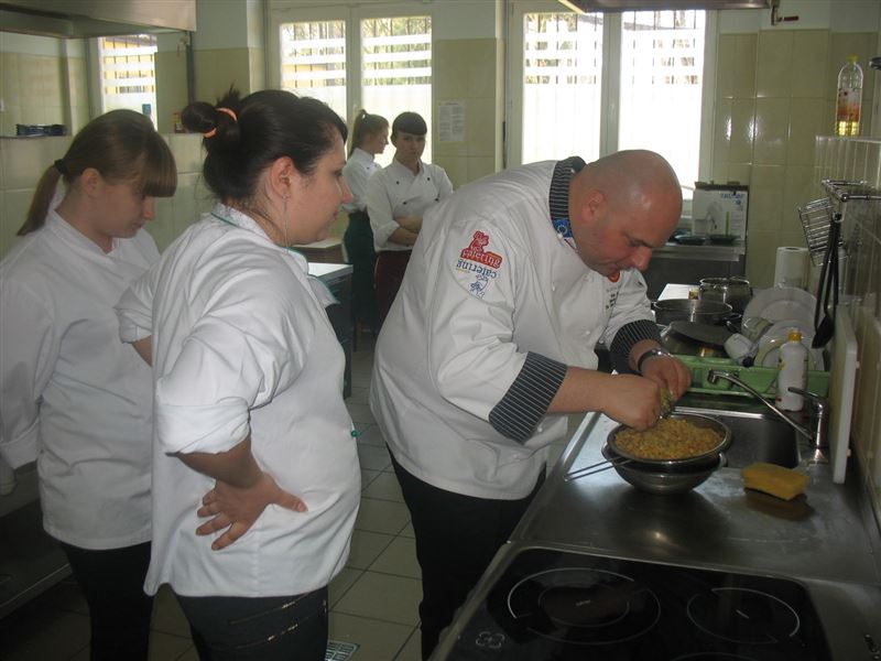 Dla zaostrzenia apetytu warto wspomnieć o kolejnych zajęciach w ramach koła zainteresowań „Szkolny Masterchef”. Warsztaty „Kuchnia na ostro” prowadziła pani Lidia Pojawa. Było ostro, a nawet bardzo ostro. Na warsztatach wykorzystano bardzo dużo świeżych i suszonych przypraw, które pozwalają na tworzenie przeróżnych ostrych mieszanek do potraw. Wachlarz smaków został dopełniony w ramach „Koła cukierniczego”. 17 kwietnia młodzież poznawała tajniki pieczenia i zdobienia tortów. Wypieki kusiły aromatem i były ucztą dla oczu.