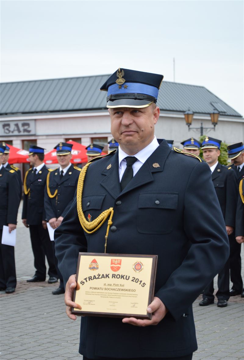 Starostwo Powiatowe w Sochaczewie wraz z Komendą Powiatową Państwowej Straży Pożarnej w Sochaczewie oraz Oddziałem Powiatowym Związku Ochotniczych Straży Pożarnych Rzeczypospolitej Polskiej w Sochaczewie ogłosiły pierwszą edycję konkursu na „Strażaka Roku Powiatu Sochaczewskiego”. Uroczysty apel był niewątpliwie okazją do nagrodzenia i wyróżnienia tegoż strażaka, przyznano też dwa tytuły Honorowych Strażaków. Celem plebiscytu było wyłonienie strażaka, którego działalność na rzecz ochrony przeciwpożarowej zasługuje na szczególne wyróżnienie bądź który odznaczył się czynem bohaterskim. Przypomnijmy. Udział w konkursie mogli wziąć wyłącznie strażacy należący do jednostek OSP z terenu powiatu sochaczewskiego oraz pełniący służbę w KP PSP Sochaczew. Starszy aspirant Piotr Kuś zdobył tytuł Strażaka Roku. Służbę pełni w JRG w Sochaczewie, gdzie 1.06.2013 r. został mianowany na stanowisko zastępcy dowódcy zmiany. Z 1098 oddanych głosów Piotr Kuś otrzymał 660 głosów. Jak pokazał to plebiscyt jest on strażakiem bardzo lubianym przez koleżanki i kolegów strażaków. Z kolei kapitan w stanie spoczynku Henryk Kucharski i druh Walenty Adamczyk otrzymali tytuł Honorowego Strażaka Powiatu Sochaczewskiego. Pan Walenty (ur. 1910 r.) wstąpił do Ochotniczej Straży Pożarnej w Matyldowie w 1969 roku będąc jednym z jej założycieli. Zaś pan Henryk (ur. 1923 r.) jest członkiem OSP Teresin oraz Honorowym Prezesem Zarządu Gminnego OSP Teresin. Brał czynny udział w tworzeniu i rozwoju jednostek OSP na terenie Gminy Teresin.