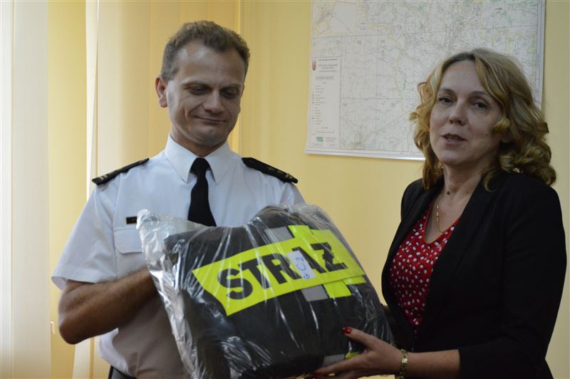 Spotkanie miało miejsce w miniony poniedziałek, 24 sierpnia. Jednym z jego powodów było przekazanie strażakom 11 kompletów ubrań specjalnych. Władze samorządu powiatowego złożyły wniosek do Wojewódzkiego Funduszu Ochrony Środowiska i Gospodarki Wodnej na zakup wspomnianych strojów. Połowę wartości wnioskowanej kwoty przekazało Starostwo, i tym samym udało się zakupić 11 kompletów nowego umundurowania. Każdy z nich wart jest ok. 1300 zł. Oficjalne przekazanie nastąpiło właśnie w poniedziałek w urzędzie Starostwa. – To pierwszy raz, gdy sochaczewski samorząd powiatowy złożył do WFOŚIGW wniosek na tego typu zakup. Tym bardziej się cieszę. Doskonale zdajemy sobie sprawę, jak ważną i odpowiedzialną wykonujecie pracę i służbę. Za każdym razem wyjeżdżacie na akcję z poświęceniem własnego zdrowia i życia. To trudna i ciężka służba. Dbacie nie tylko o nasze bezpieczeństwo, bo wiem też, że zawsze można na was liczyć przy okazji organizacji imprez integrujących naszą lokalną społeczność. Zawsze gotowi jesteście pomóc – mówiła Jolanta Gonta. - Mam nadzieję, że to dobry początek naszej współpracy w tej kadencji. W miarę możliwości finansowych będziemy starali się wspomagać straż, a potrzeb jak wiemy jest wiele. Choć w tak niewielki sposób chcieliśmy docenić wasz trud – mówiła podczas spotkania Jolanta Gonta. Należy w tym miejscu też wspomnieć, że w tej kadencji samorząd powiatowy zakupił już dla potrzeb komendy straży zestaw 5 plandek. Te, już zostały wykorzystanie podczas ostatnich nawałnic, które nawiedziły również nasz powiat, wyrządzając szkody w prywatnych gospodarstwach.