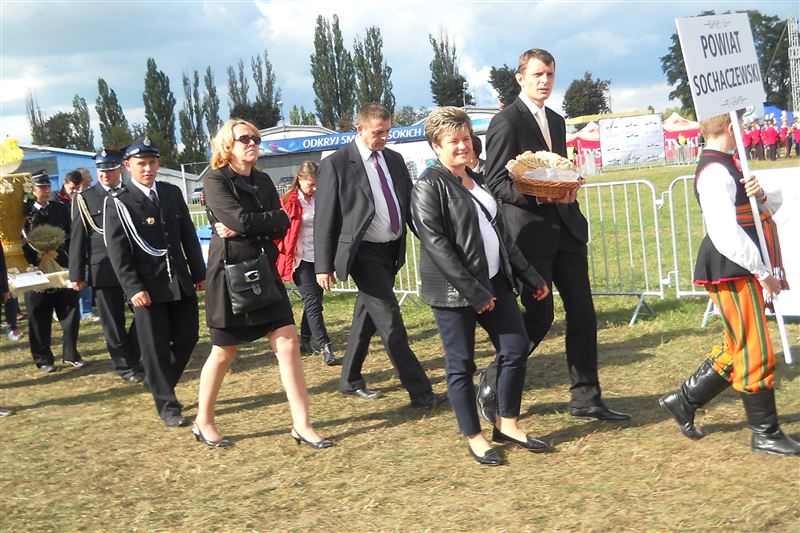 Po Mszy korowód dożynkowy złożony m.in. z delegacji wraz z wieńcami z poszczególnych powiatów województwa mazowieckiego, pocztów sztandarowych, zaproszonych gości i mieszkańców województwa mazowieckiego przemaszerował na lotnisko Aeroklubu Ziemi Płockiej. Tu, miały miejsce oficjalne uroczystości Dożynek, których centralnym punktem był była prezentacja wieńców dożynkowych oraz obrzędu dożynkowego w wykonaniu Zespołu Pieśni i Tańca „Dzieci Płocka” a także dzielenie się chlebem. Ponadto, na wszystkich czekały stoiska instytucji związanych z rolnictwem, z produktami tradycyjnymi, regionalnymi i lokalnymi. Była też wystawa płodów rolnych, sprzętu rolniczego, jak i kiermasz sztuki ludowej. Organizatorzy przewidzieli też konkursy, atrakcje dla najmłodszych. Całość uświetnił występ zespołów: Don Vasyl & Roma, Baciary oraz Donatan & Cleo