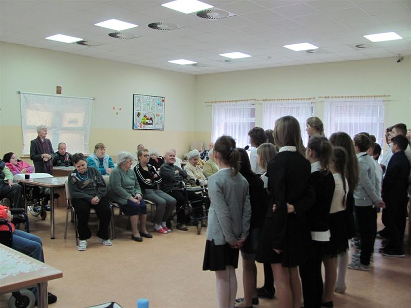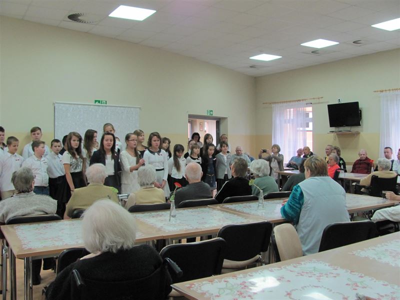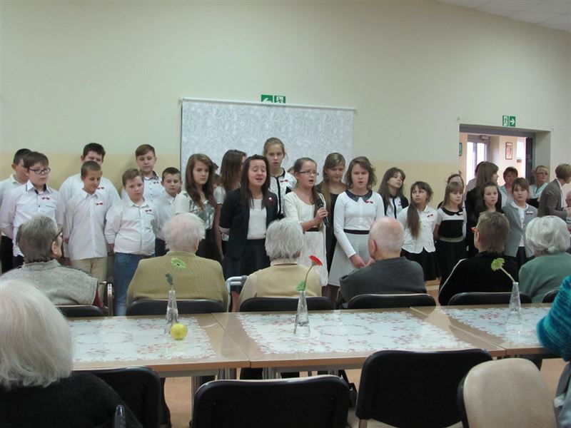 W przeddzień Święta, wizytę w naszym Domu złożyły dzieci wraz z paniami nauczycielkami ze Szkoły Podstawowej w Brzozowie. Uczniowie zaprezentowali program słowno-muzyczny nawiązujący do historycznych wydarzeń sprzed prawie 100 lat, dostarczając naszym mieszkańcom wielu wzruszeń przy dźwiękach popularnych pieśni patriotycznych.