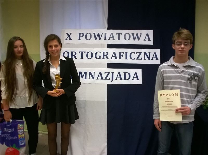 Naszą szkołę reprezentowała dwójka uczniów: Marta Strzelczyk, uczennica klasy IIA oraz Szymon Górka, uczeń klasy IIIB. W szrankach ortograficznych potyczek bezapelacyjnie zwyciężyła Marta!