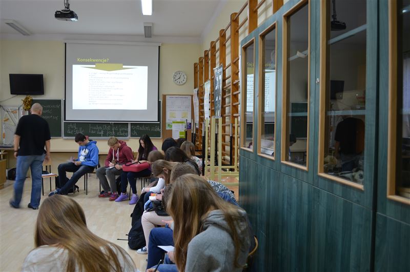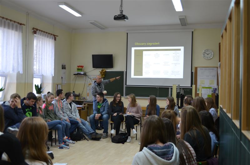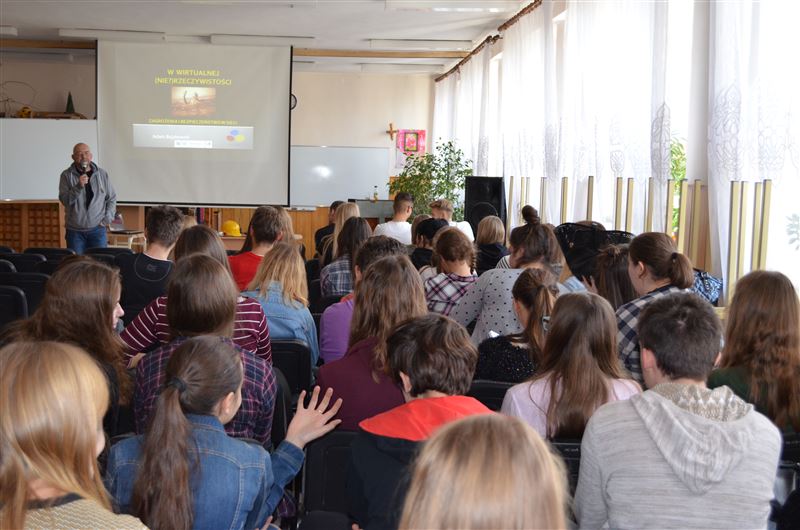 Pan Adam Bojakowski przeprowadził zajęcia dotyczące zagrożeń i bezpieczeństwa w Sieci. Profesjonalizm, merytoryczne podejście do zagadnienia, a jednocześnie przekazywanie wiedzy w przystępny i ciekawy sposób, sięganie do przykładów „z życia wziętych”, dynamizm i żywiołowość sprawiły, że młodzież nie tylko uważnie przysłuchiwała się przekazywanym treściom, ale niezwykle aktywnie uczestniczyła w warsztatach.