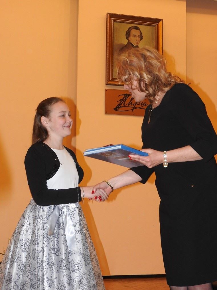 Młoda, utalentowana uczennica Państwowej Szkoły Muzycznej w Sochaczewie – Oliwia Adamczyk po raz trzeci otrzymała stypendium starosty – przyznawane w ramach Międzynarodowego Festiwalu Chopinowskiego na Mazowszu. Nagrodę tę podczas koncertu laureatów Oliwii wręczyła Jolanta Gonta, starosta powiatu sochaczewskiego.