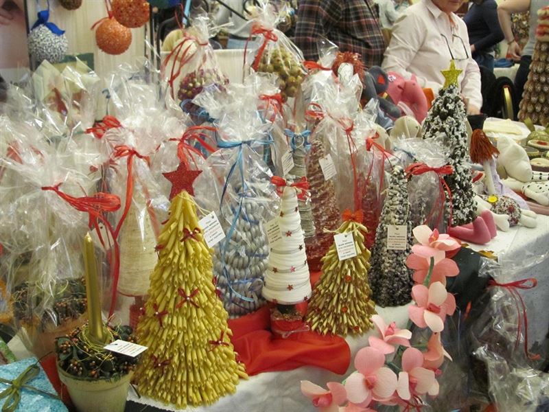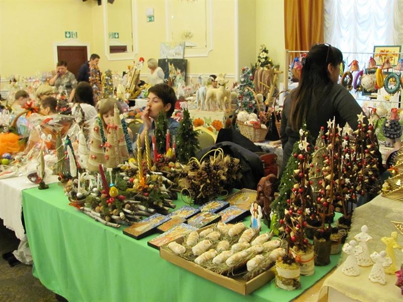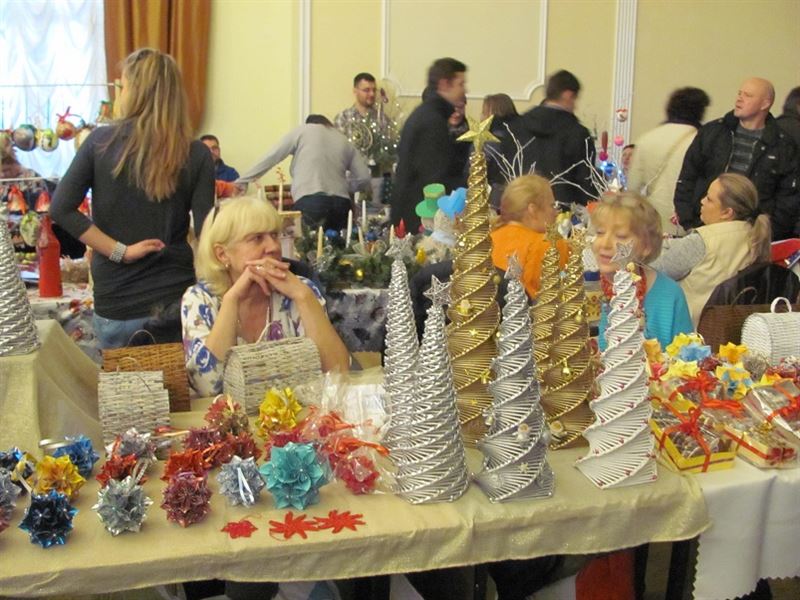 Salę balową w Hotelu zapełnili wystawcy i zwiedzający. Na stoiskach oferowane były piękne, ręcznie wykonane ozdoby bożonarodzeniowe, bombki, aniołki, choinki, stroiki, pudełka ręcznie malowane, biżuteria. Nie zabrakło także wyrobów pszczelarskich, wędliniarskich i słodkości z piernika.