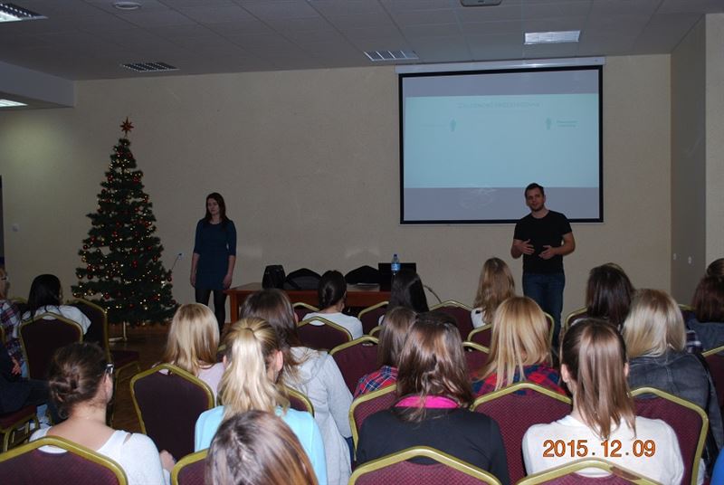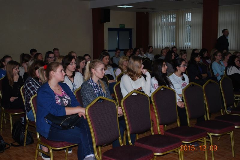 Wszyscy „Ogrodnikowi" maturzyści z liceów i techników brali udział w spotkaniu z przedstawicielami z Wyższej Szkoły Finansów i Zarządzania w Warszawie, panią Dorotą Biszewską i panem Sławomirem Orlińskim.