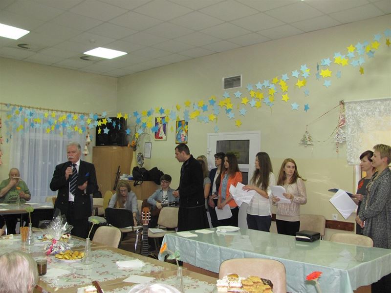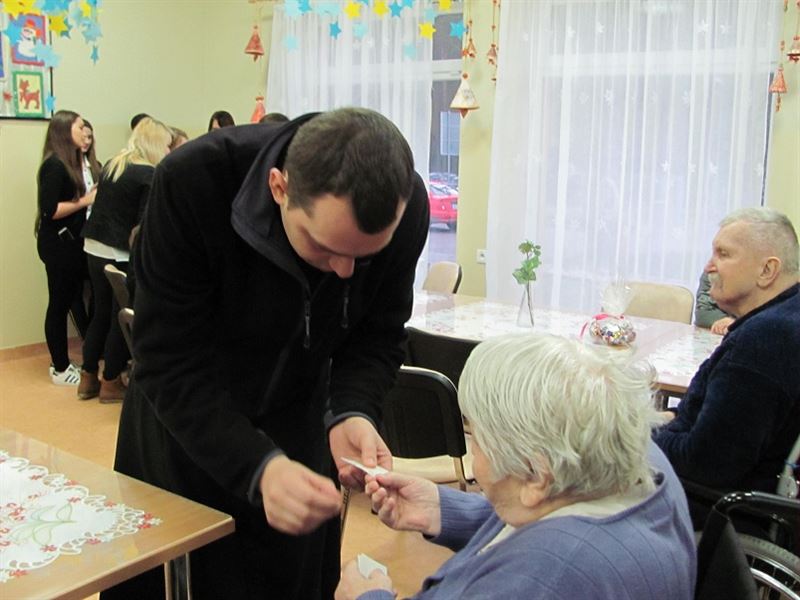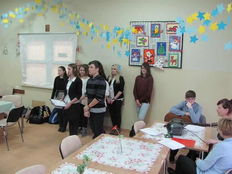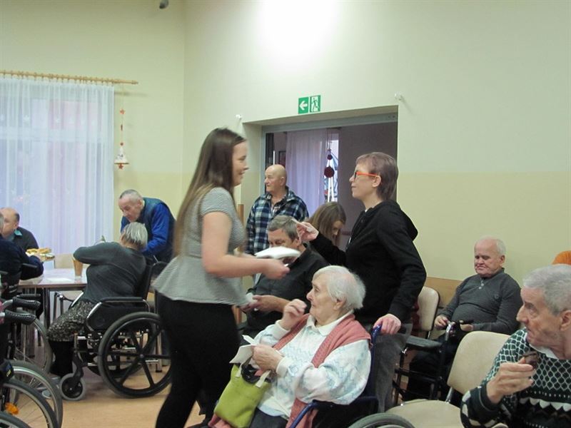 W piątek 18 grudnia w Domu Pomocy Społecznej w Młodzieszynie działo się bardzo dużo. W godzinach popołudniowych licznie odwiedziła nas młodzież wraz z opiekunami z Zespołu Szkół im. Jarosława Iwaszkiewicza w Sochaczewie. Blisko dwie godziny wszyscy razem śpiewaliśmy pastorałki i kolędy.