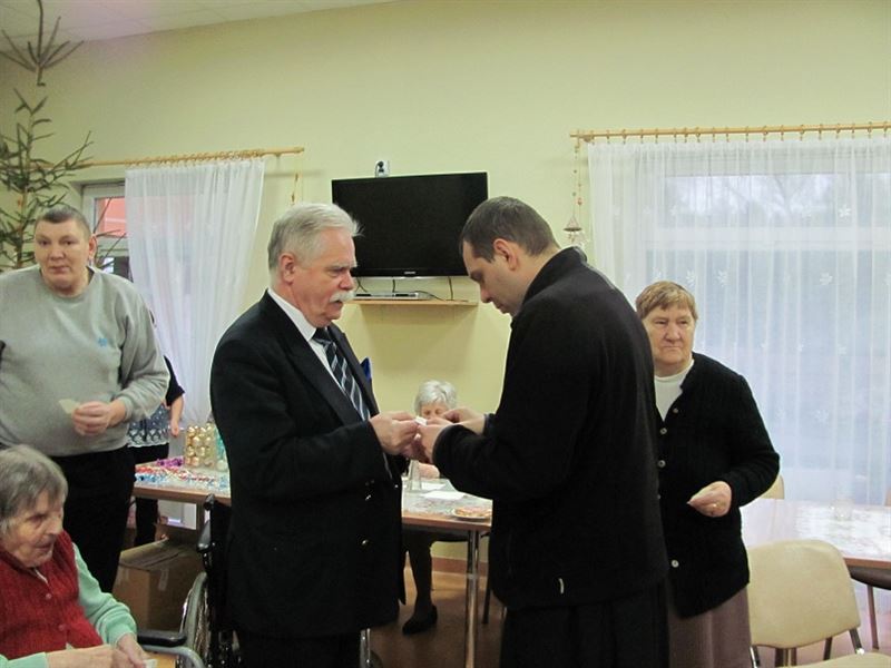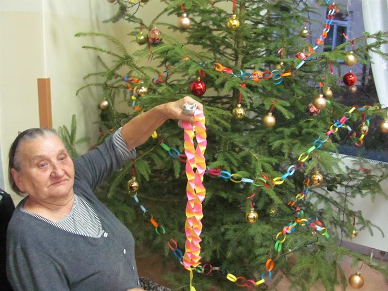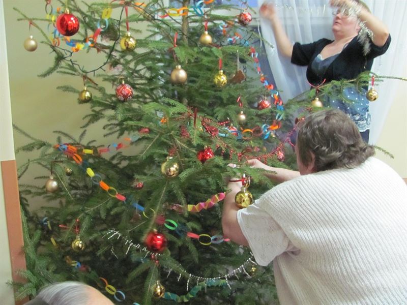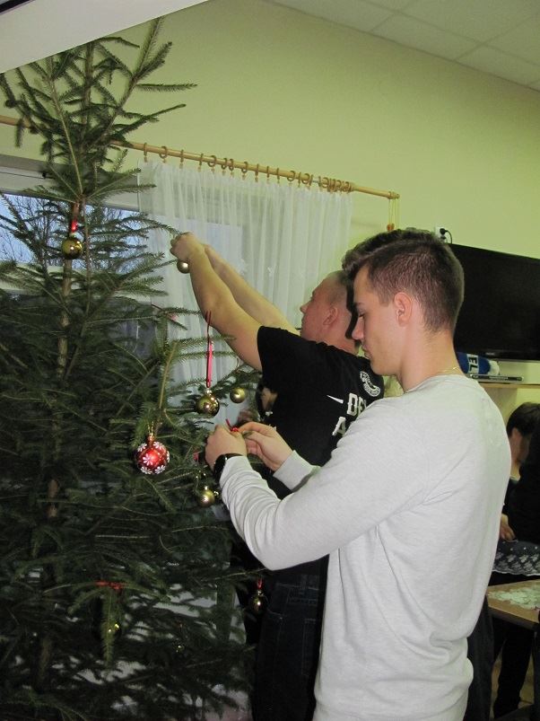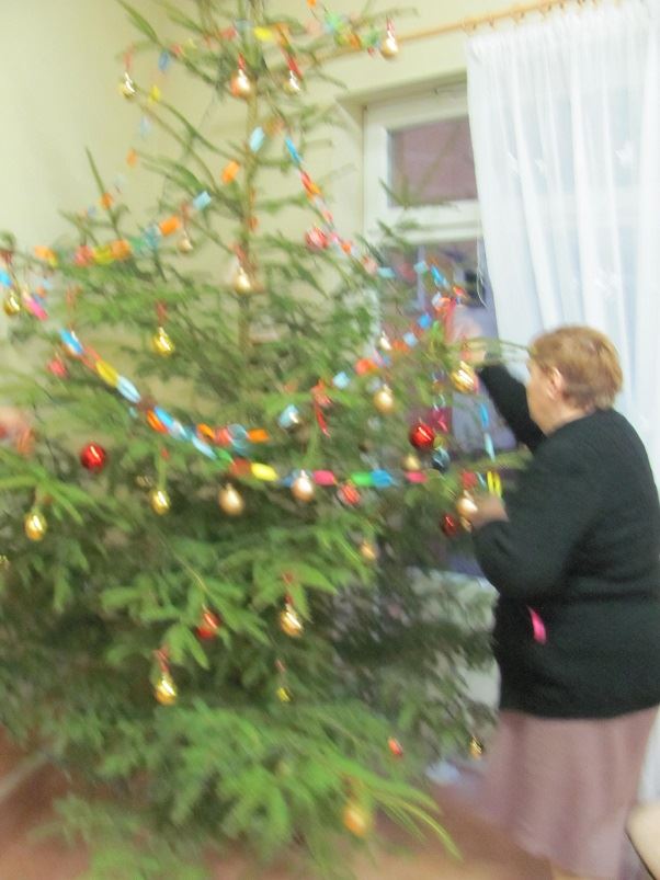 Do wspólnego kolędowania włączył się Pan Dyrektor Konrad Jakubowski oraz Pani Wicedyrektor Iwona Przydatek. Po odśpiewaniu kilku kolęd, wszyscy połamaliśmy się opłatkiem i złożyliśmy sobie życzenia świąteczne, aby nadchodzące Święta były zdrowe i radosne. Przy okazji uroczystego kolędowania, mieszkańcy we współpracy z młodzieżą ozdobili choinkę w własnoręcznie przygotowane łańcuchy oraz upieczone pierniki.