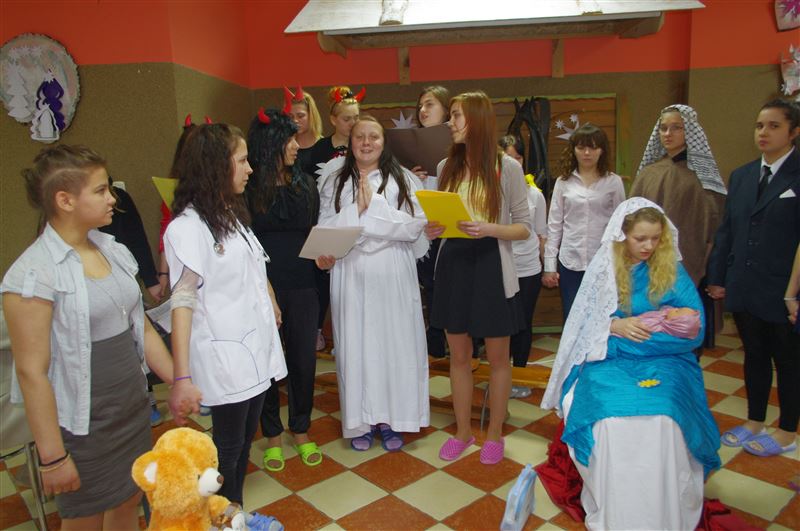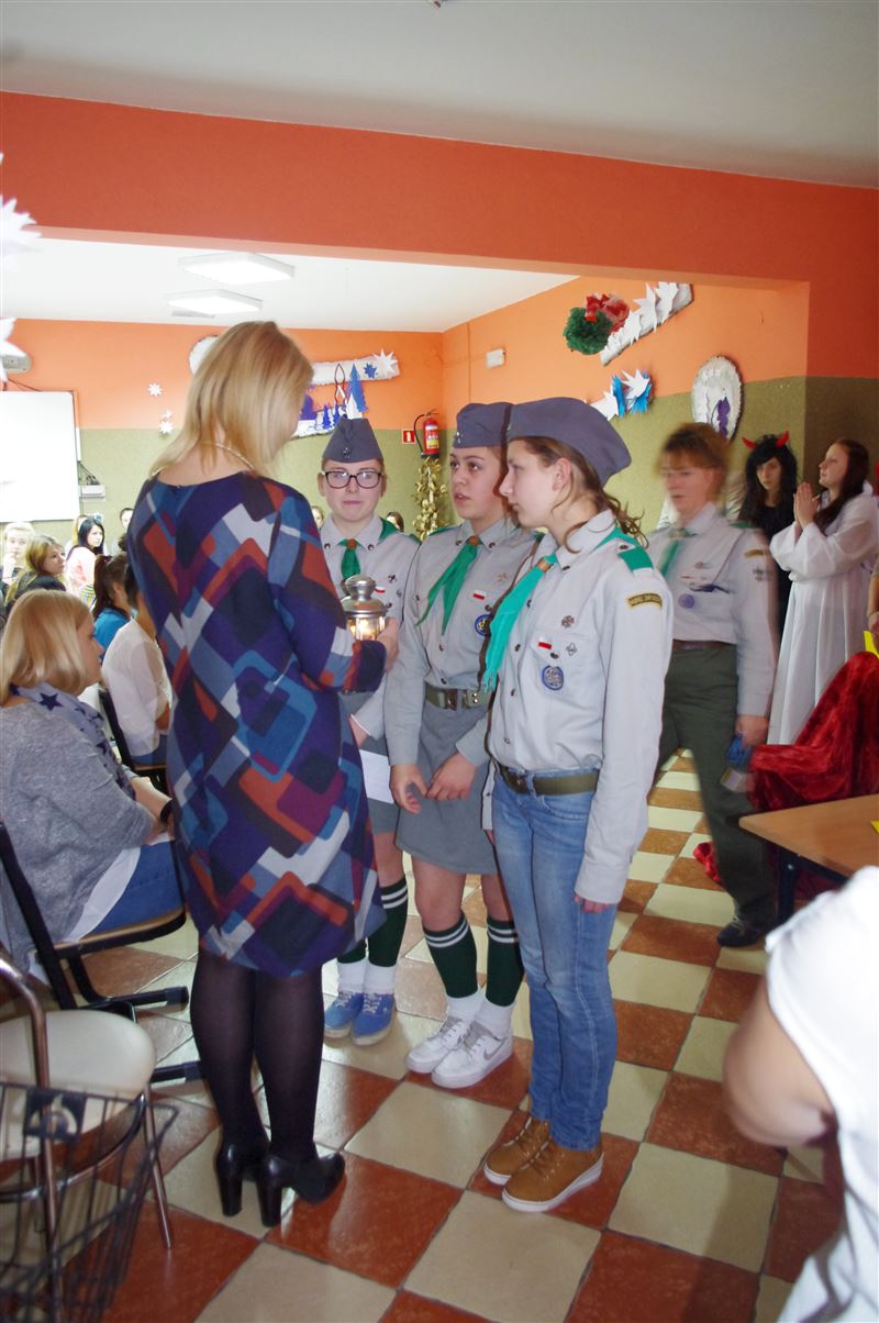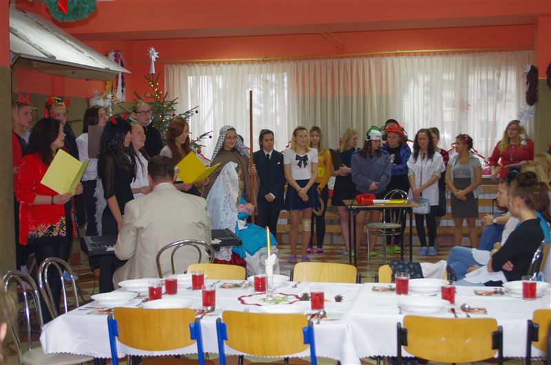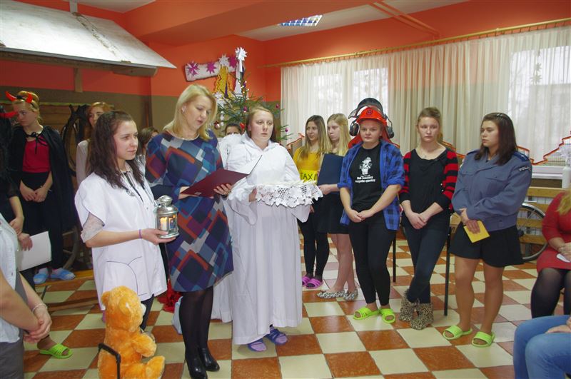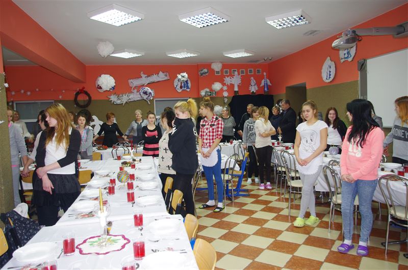 16 grudnia w Młodzieżowym Ośrodku Wychowawczym „Dom na szlaku” odbyła się Wieczerza Wigilijna. Wychowanki naszej szkoły pod kierunkiem katechetki Katarzyny Krzemińskiej zaprezentowały „Współczesne Jasełka”. Dziewczęta świetnie wcieliły się w role wójta, policjanta, lekarza, murarza a także Świętej Rodziny. Nie było by jasełek bez diabłów i aniołów. Po przedstawieniu harcerze wręczyli pani dyrektor Betlejemskie światełko pokoju. Następnie dyrektor placówki złożyła wszystkim życzenia świąteczne. Uczennice, nauczyciele, wychowawcy i pracownicy podzielili się opłatkiem i zasiedli do wspólnej wieczerzy wigilijnej. Nie zabrakło też wspólnego kolędowania.