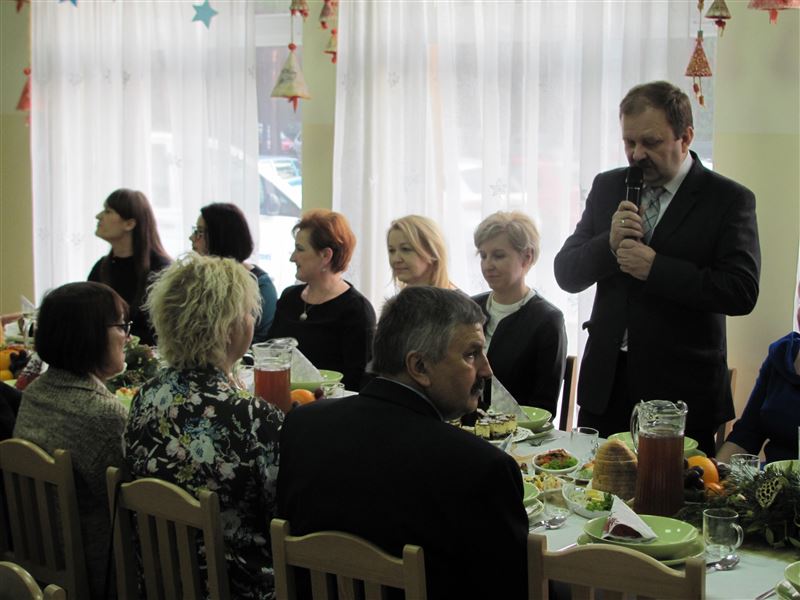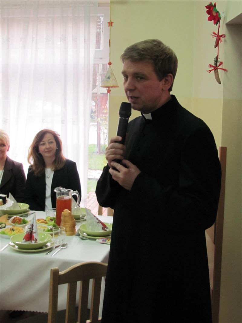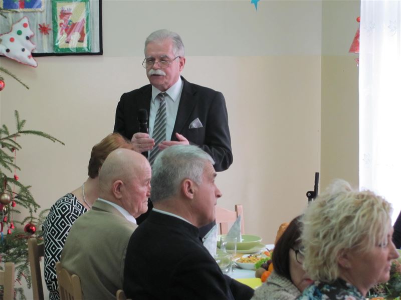 Wszystkich zgromadzonych gości przywitał Pan Dyrektor Konrad Jakubowski, przy okazji składając najserdeczniejsze życzenia na Święta Bożego Narodzenia. Następnie życzenia składali w imieniu Starostwa Powiatowego Pan Tadeusz Głuchowski, Gminy Młodzieszyn Pani Monika Pietrzyk – Połubińska oraz ksiądz Proboszcz Dariusz Kuźmiński. W imieniu Mieszkańców Domu życzenia złożył Pan Eugeniusz Linca – Przewodniczący Rady Mieszkańców życząc wszystkim zgromadzonym zdrowych, pogodnych i spokojnych Świąt oraz tego abyśmy spotkali się w takim samym bądź większym gronie za rok.