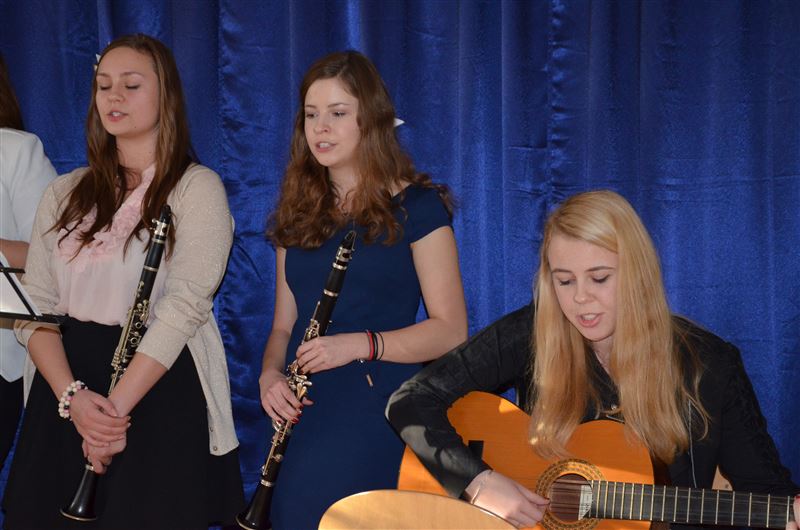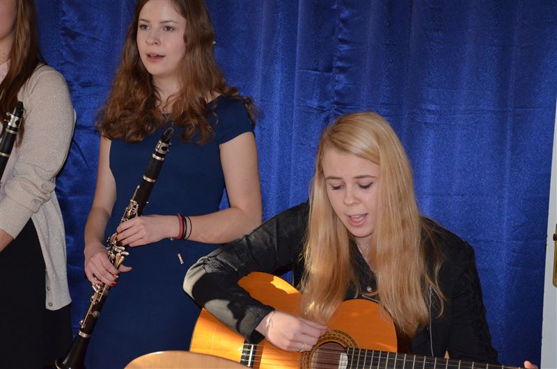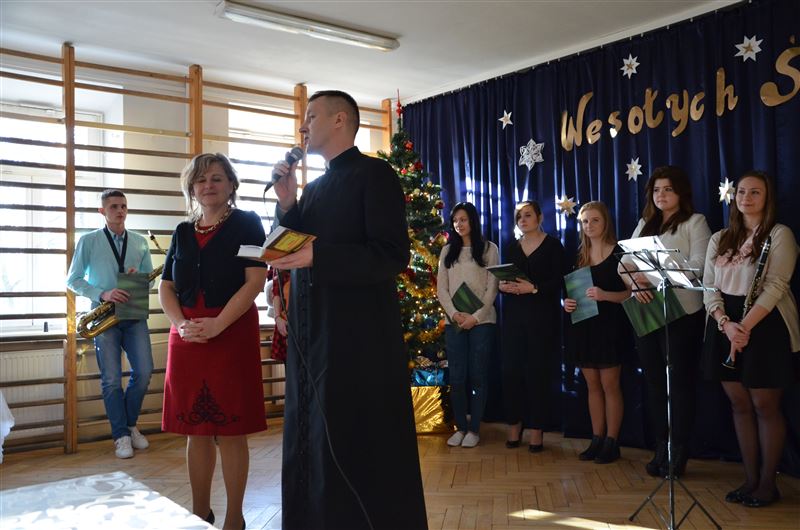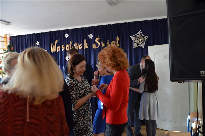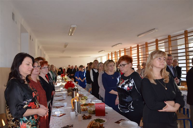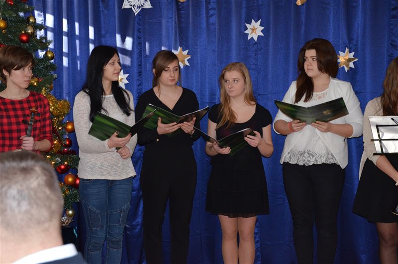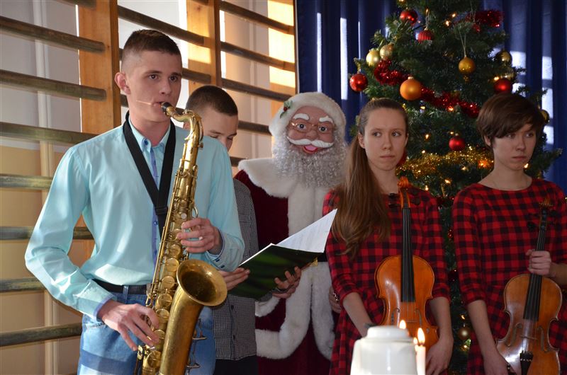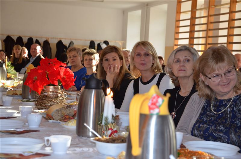 Uczniowie szkoły, w specjalnie na tę okazję przygotowanym koncercie, opowiadali historie znanych kolęd, śpiewali je, a słuchacze włączali się w ten niezwykły koncert. To była pierwsza część spotkania, potem odbyło się czytanie fragmentu Ewangelii wg Św. Łukasza, przełamanie się opłatkiem, wspólne życzenia spokoju, miłości i radości na nadchodzące Święta Bożego Narodzenia. Dyrektor Julia Jakubowska złożyła życzenia świąteczne, a następnie wszyscy zasiedli do wigilijnego stołu.