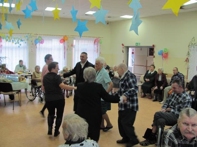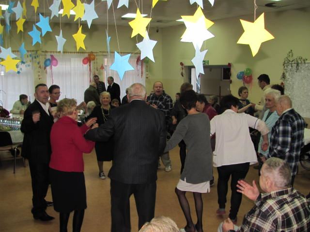 W dniu 31 grudnia w Domu Pomocy Społecznej w Młodzieszynie trwały gorączkowe przygotowania do wyjątkowej nocy tego kończącego się już roku. Mieszkanki upiększały się tworząc sylwestrowe fryzury, ozdabiając je między innymi kolorowym brokatem. Zaś mężczyźni ubierali się w odświętne ubrania, przy okazji doglądając swoje współmieszkanki. W godz. 14.00 - 17.15, odbyła się ostatnia zabawa w tym roku. Wszyscy Mieszkańcy Naszego Domu, w bardzo świątecznych i Noworocznych kreacjach, bawili się przy muzyce z różnych lat. Były melodie z lat młodzieńczych, muzyka z okresu dorastania, jak również ta współczesna. Cieszyła ona serca naszych Mieszkańców, jak również podrywała do tańca duże grono obecnych na zabawie. Oprócz muzyki i tańca było wiele słodkości: ciasta, pączki, cukierki, a przede wszystkim duże ilości owoców. Podczas szampańskiej zabawy nie mogło zabraknąć noworocznego trunku. Dlatego po życzeniach złożonych przez Pana Dyrektora Konrada Jakubowskiego, każdy otrzymał kubeczek z symbolicznym szampanem Piccolo. Bardzo dziękujemy pracownikom Domu za tak wspaniałe przygotowanie ostatniego w tym roku balu. Kiedy następny? Karnawał jest bardzo krótki, więc zapraszamy do odwiedzania naszej strony i śledzenia, co u nas się dzieje. Zabawa się skończyła, ale my i tak będziemy czekać na północ by móc przywitać nadchodzący Nowy Rok i jeszcze raz złożyć sobie życzenia.