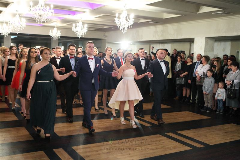 Bal rozpoczął się o godzinie 19.00 od powitania przez uczniów wszystkich zgromadzonych gości. Tradycyjnie już padły słowa „poloneza czas zacząć”, po których obecni na sali, mogli obejrzeć ten podniosły i tradycyjny taniec w wykonaniu uczniów. Po polonezie nagrodzonym gromkimi brawami głos zabrał pan dyrektor Tomasz Obrączka, który życzył udanej zabawy do białego rana oraz powodzenia na nadciągającym nieubłaganie egzaminie maturalnym. Został również odczytany list od pani starosty Jolanty Gonty, która również kierowała w stronę maturzystów jak najlepsze życzenia, aby zbliżający się egzamin dojrzałości przeszli pomyślnie. Uczniowie wręczyli kwiaty wychowawcom i dyrekcji, dziękując za trud włożony w ich naukę, zdobywanie wiedzy i przygotowanie do matury. Słowa podziękowania płynęły również w stronę rodziców, organizatorów tego niezwykłego balu.