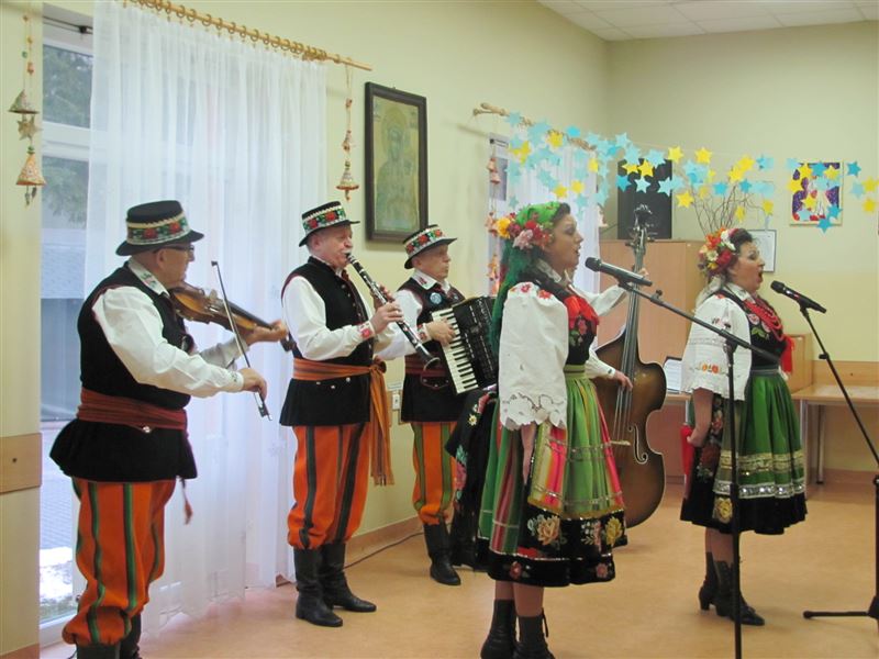 We wtorek 26 stycznia 2016r mieszkańców Domu Pomocy Społecznej w Młodzieszynie odwiedziła sochaczewska Kapela Mazowiecka, która przyjechała do nas z koncertem kolęd. Wokalistki kapeli - siostry: pani Bożena Skrzynecka oraz pani Dorota Zaczkowska dały brawurowy koncert z przytupem ludowym. Wokalistkom towarzyszyli współtwórcy kapeli: pan Andrzej Skupiński grający na klarnecie, pan Piotr Wojtczak – akordeon, pan Jan Iwańczak – skrzypce oraz pan Waldemar Jasiński – kontrabas.
