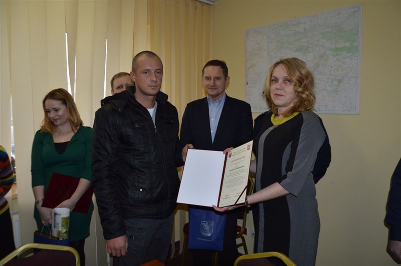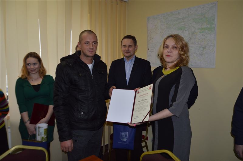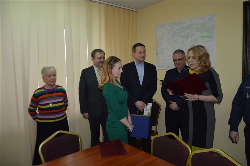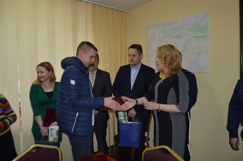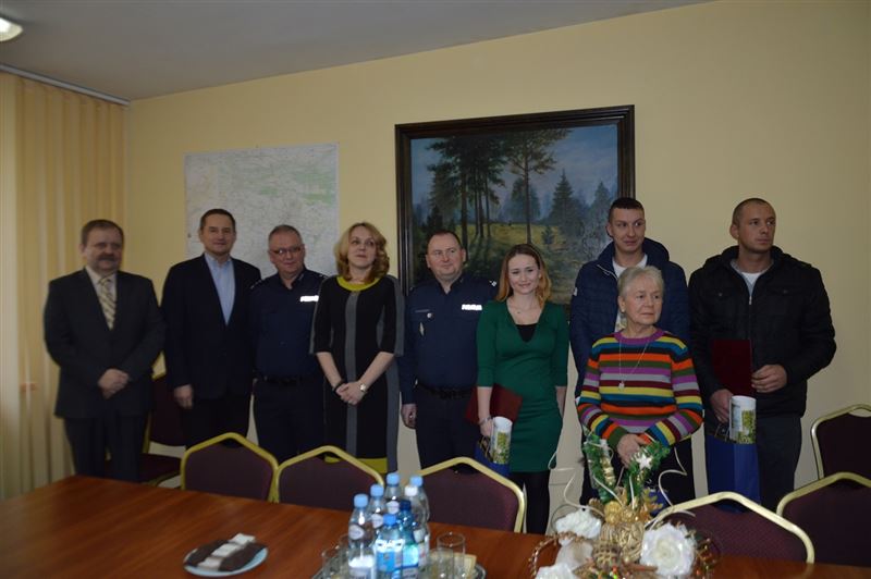 We wtorek 26 stycznia br. w sali konferencyjnej Starostwa Powiatowego w Sochaczewie Starosta Jolanta Gonta, Burmistrz Miasta Sochaczew Pan Piotr Osiecki, Komendant Powiatowy Policji insp. Janusz Patury oraz Naczelnik Wydziału Prewencji podinsp. Grzegorz Radzikowski dziękowali obywatelom Sochaczewa za uratowanie staruszki.