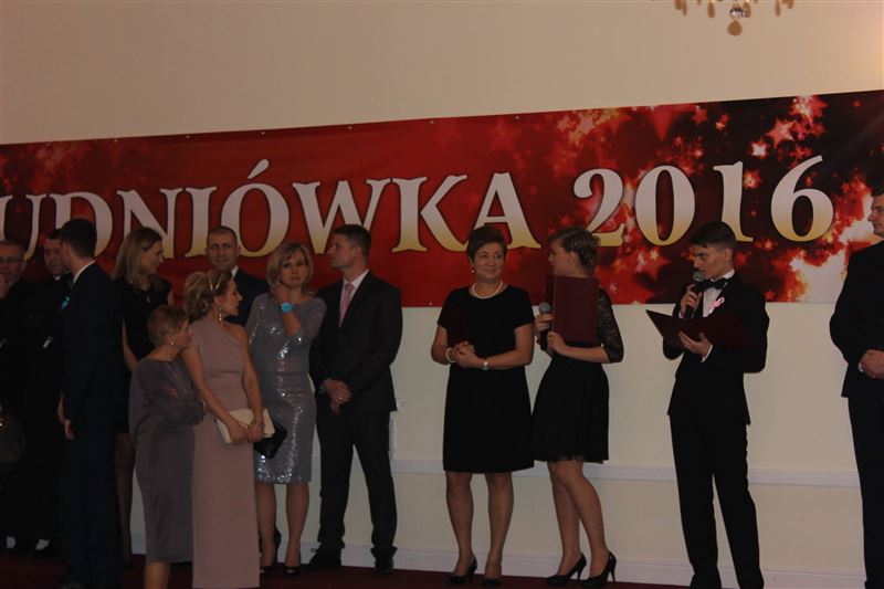 Prowadzący część oficjalną uczniowie, Agata Fornalska i Szymon Kochański, powitali zaproszonych gości: panią dyrektor Hannę Bonecką, panią wicedyrektor Bożennę Małolepszą oraz nauczycieli i licznie zebranych rodziców. Szczególnie gorąco zostali powitani bohaterowie wieczoru – tegoroczni maturzyści. W ich imieniu prowadzący podziękowali dyrekcji oraz wszystkim pedagogom za stworzenie w szkole wspaniałej atmosfery, która sprzyja nauce i rozwijaniu własnych zainteresowań. Szczególne podziękowania zostały skierowane do wychowawczyń klas maturalnych: pani Grażyny Muszyńskiej- Kwiatkowskiej, pani Lidii Pojawy, pani Małgorzaty Byczyńskiej- Szlendak, pani Agnieszki Mućki i pani Marty Włodarczyk. Głos zabrała także przedstawicielka rodziców uczniów klas maturalnych ,pani Wioletta Foks. Oficjalnego rozpoczęcie studniówki dokonała pani dyrektor Hanna Bonecka, która życzyła wszystkim wspaniałej zabawy.