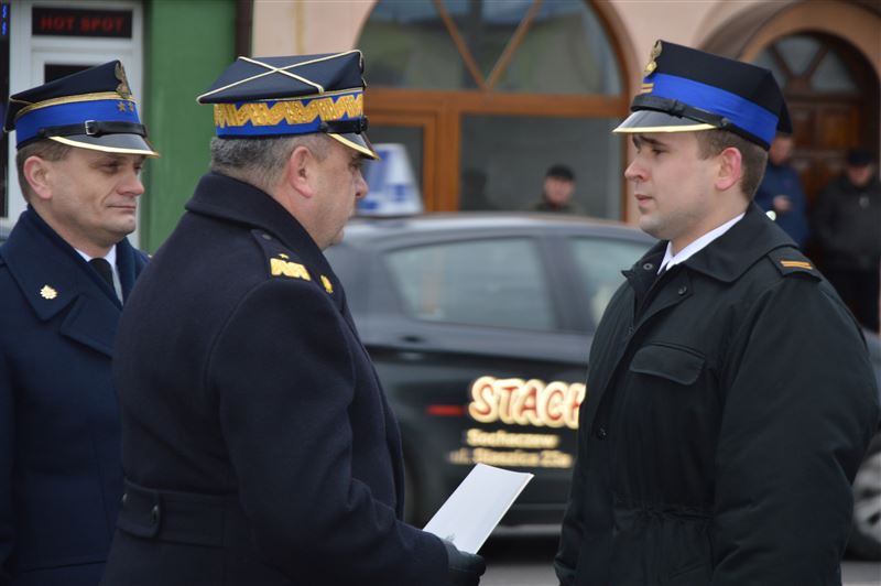 Uroczystość, która miała miejsce w miniony czwartek rozpoczęła się od złożenia meldunku Mazowieckiemu Komendantowi Wojewódzkiemu PSP – nadbryg. Józefowi Galicy o rozpoczęciu uroczystości. Przywitano pododdziały, wniesiono sztandar straży, wysłuchano hymnu i przystąpiono do przywitania gości. A tych powitał komendant Powiatowy PSP w Sochaczewie bryg. Piotr Piątkowski. W swym wystąpieniu komendant straży przedstawił potencjał bojowy pozyskanych pojazdów, wskazując na ich ogromne znaczenie w systemie zabezpieczenia operacyjnego powiatu. Podkreślił przy tym, że żaden, nawet najbardziej nowoczesny sprzęt pożarniczy, nie spełni swojej roli bez właściwie wyszkolonych i zaangażowanych strażaków. Odczytał też list gratulacyjny Komendanta Powiatowego Państwowej Straży Pożarnej w Opatowie – bryg. Grzegorza Szewczyka, skierowany do sekc. Sylwestra Jaczyńskiego – strażaka sochaczewskiej Komendy, który 24 grudnia 2015 roku, natrafiając podczas prywatnej podróży na wypadek samochodowy w miejscowości Rżuchów w powiecie opatowskim, wykazał się dużym zaangażowaniem, udzielając profesjonalnej pomocy osobom poszkodowanym. Postawa sekc. Jaczyńskiego w znaczący sposób przyczyniła się do pomyślnego zakończenia akcji ratowniczej.