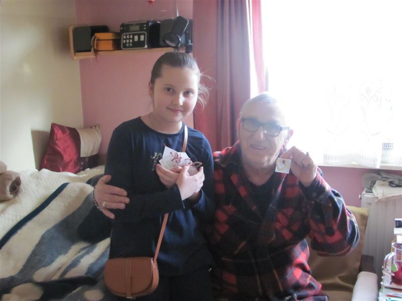 W tym dniu odwiedzili naszych mieszkańców wolontariusze ze Szkoły Podstawowej w Młodzieszynie z panią Beatą Ciura.