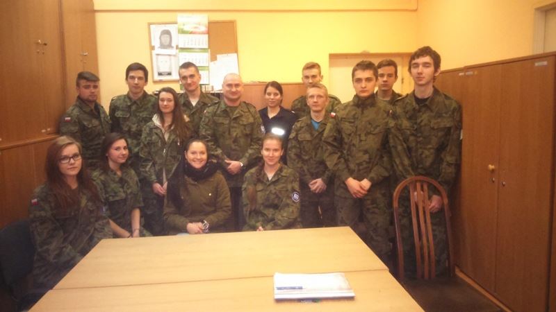 Klasa IIIb Liceum Ogólnokształcącego służb mundurowych w Zespole Szkół im. Jarosław Iwaszkiewicza w Sochaczewie miała okazję uczestniczyć w swoim pierwszym spotkaniu w Komendzie Powiatowej Policji w Sochaczewie. Zajęcia zostały przeprowadzone pod czujnym okiem st. sierż. Izabeli Senderowskiej. Na początku spotkania przedstawicielka policji przedstawiła, w jaki sposób absolwenci naszej szkoły mogliby dostać się do służby w policji. Policjantka przedstawiła metody doboru szkoły policyjnej i kwalifikacji zawodowych. Jednym z ważniejszym tematów było zagadnienie dotyczące umiejętności i osobowości przyszłego policjanta. Uczniowie mieli okazję poznać strukturę i zadania, jakie obowiązują podczas służby w policji. Ciekawym doświadczeniem, jakiego mogli doświadczyć maturzyści był pokaz kajdankowania osoby zatrzymanej, w której to oni sami wcielali się w rolę zatrzymanych.