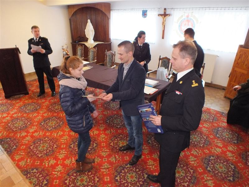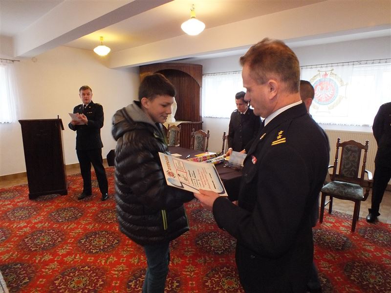 Nagrody rzeczowe dla wszystkich uczestników konkursu wręczył Dyrektor Wydziału Bezpieczeństwa Publicznego, Zdrowotnego, Zarządzania Kryzysowego i Spraw Obronnych Starostwa Powiatowego w Sochaczewie dh Przemysław Zieliński wraz z Komendantem Powiatowym Państwowej Straży Pożarnej w Sochaczewie bryg. Piotrem Piątkowskim.