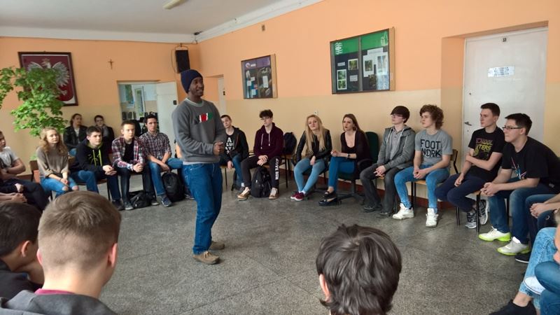Ostatni tydzień był w Iwaszkiewiczu bardzo intensywny i atrakcyjny z wielu powodów- przede wszystkim jednak dlatego, iż nasi uczniowie mieli okazję gościć studentów- wolontariuszy międzynarodowej organizacji Aiesec. Odwiedzili nas Catrin z Ukrainy oraz Samuel z Kenii, którzy spędzili z nami 5 dni prezentując nam swoje kraje, kultury i opowiadając o panujących w nich zwyczajach.