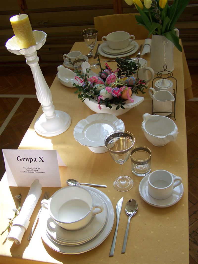 Uczniowie Zespołu Szkół im. Jarosława Iwaszkiewicza wzięli udział w konkursie „ Aranżacje stołów wielkanocnych”. Wydarzenie cieszyło się dużym zainteresowaniem, zgłosiło się 11 zespołów. Zadaniem uczestników, było nakrycie stołu dla dwóch osób z uwzględnieniem dodatków związanych ze Świętami Wielkanocnymi.
