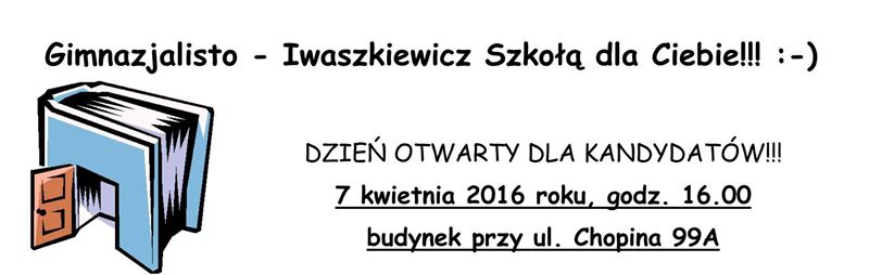 Już 7 kwietnia o godzinie 16.00 Zespół Szkół im. Jarosława Iwaszkiewicza zaprasza gimnazjalistów i ich rodziców na dzień otwarty w budynku szkoły przy ulicy Chopina 99a.
