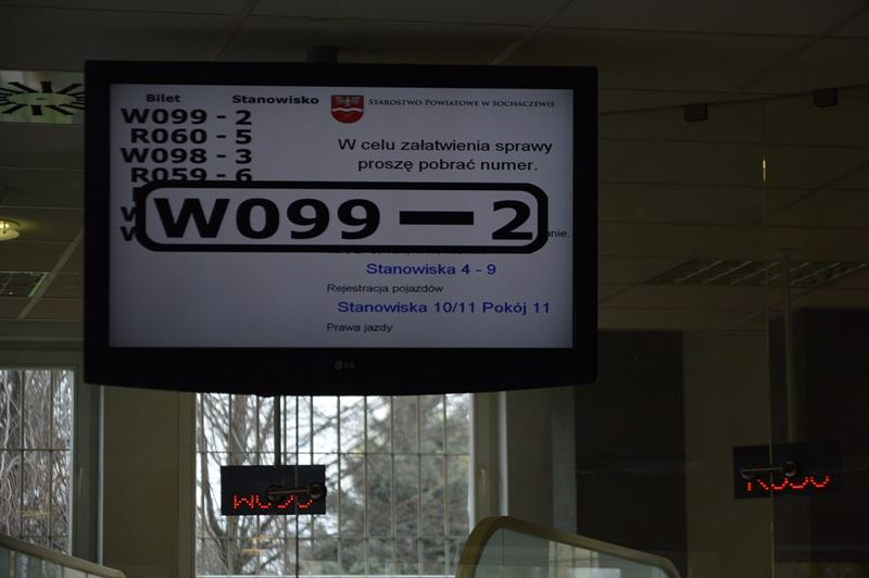 Interesanci załatwiający sprawy w Wydziale Komunikacji i Transportu w Starostwie Powiatowym w Sochaczewie mogą już w pełni korzystać z nowego systemu kolejkowego. Skomputeryzowany system zarządzania obsługą klientów ma za zadnie uporządkować i usprawnić kolejkę do poszczególnych okienek, dzięki czemu zdecydowanie szybciej załatwimy daną sprawę.