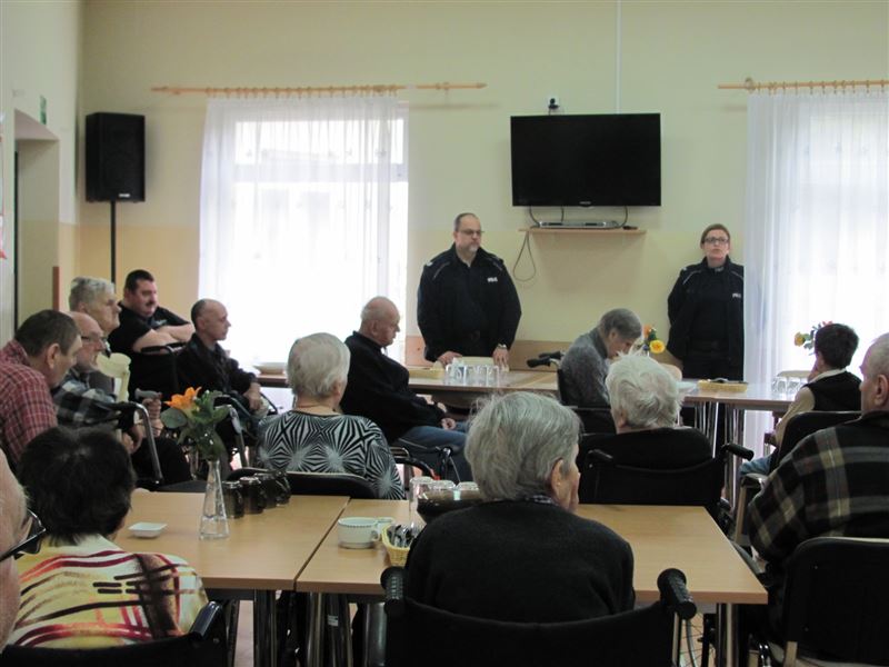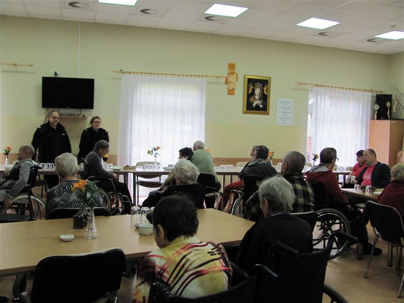 W wtorkowe (19 kwietnia br.) przedpołudnie mieszkańców Domu Pomocy Społecznej w Młodzieszynie odwiedziła starsza sierżant Agnieszka Dzik z Zespołu ds. Profilaktyki Społecznej, Nieletnich i Patologii Komendy Powiatowej Policji w Sochaczewie oraz sierżant sztabowy Marek Grocholewski z Posterunku Policji w Młodzieszynie, który jest naszym dzielnicowym.