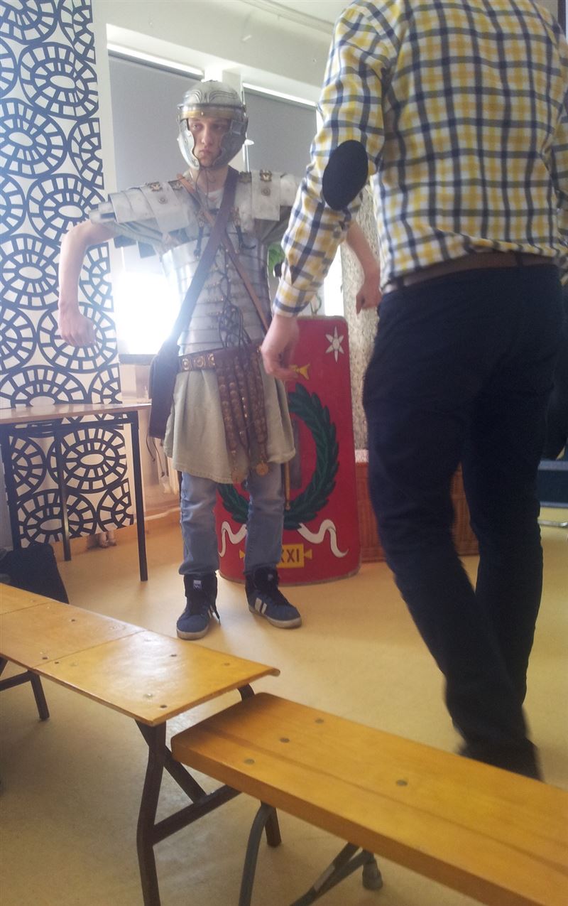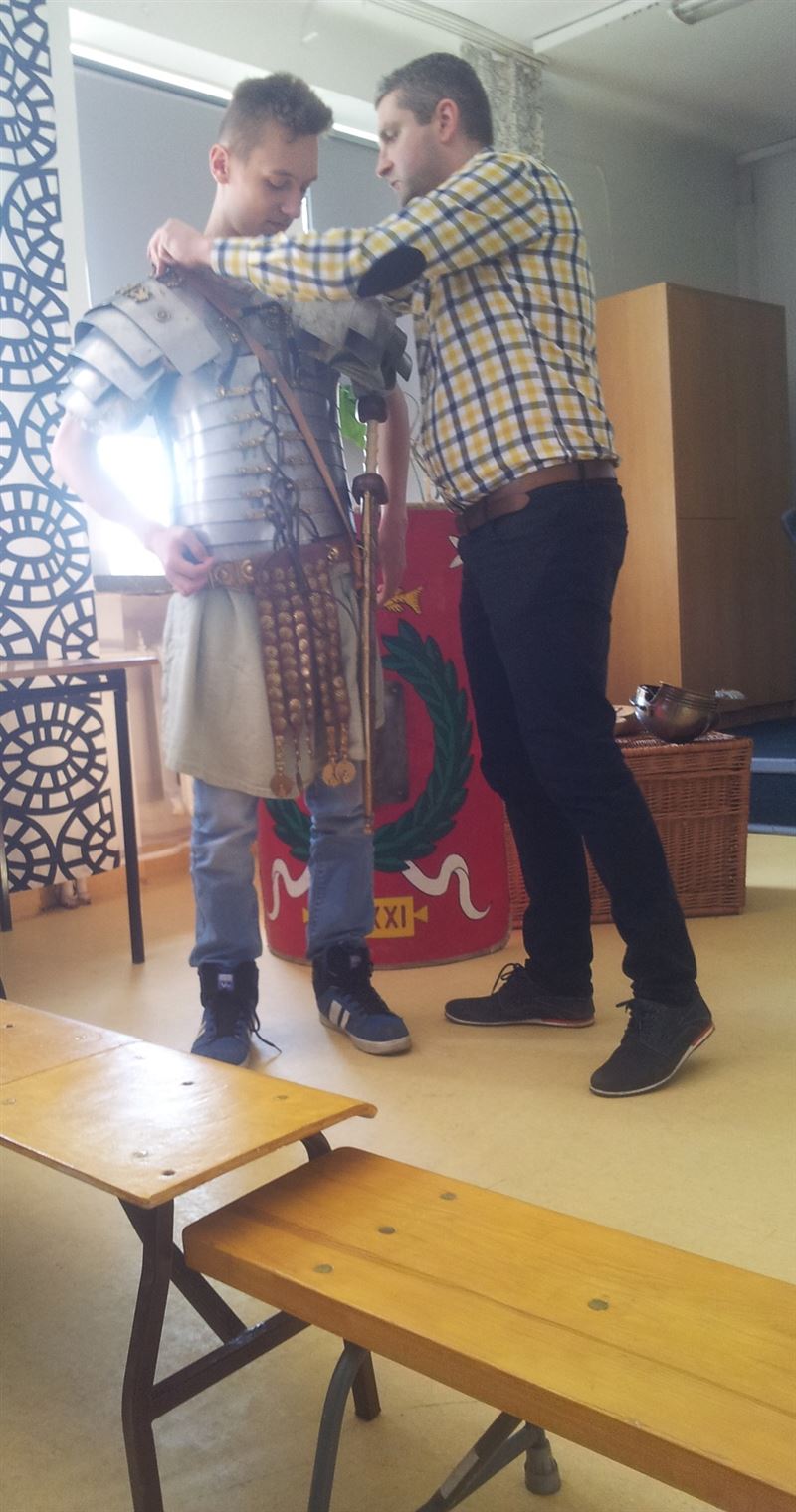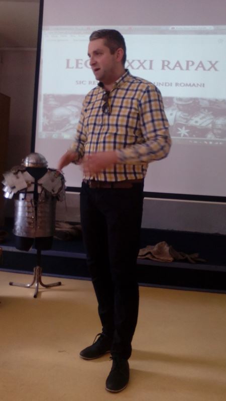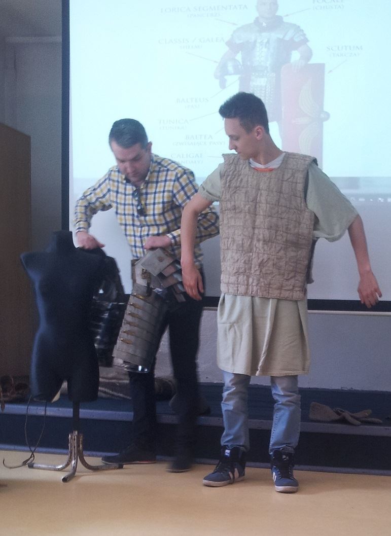 Zespół Szkół im. Jarosława Iwaszkiewicza w ubiegłym tygodniu gościł absolwenta szkoły, pasjonata Legionów Rzymskich, Pana Piotra Wróbla. Pan Piotr poświęca swojemu hobby każdą wolną chwilę. Młodzież licznie zgromadzona na spotkaniu z zainteresowaniem wysłuchała gościa i obejrzała prezentację. Uczniowie mogli dowiedzieć się, jak wyglądał powszedni dzień legionistów, co jedli i pili oraz w jaki sposób spędzali wolny czas. Jeden z uczestników spotkania z klasy służb mundurowych miał niepowtarzalną okazje założenia zbroi legionisty rzymskiego, która jest rekonstrukcją z epoki i prezentowania jej w czasie spotkania. Takie lekcje służą pogłębianiu wiedzy oraz poszukiwaniu własnych pasji.