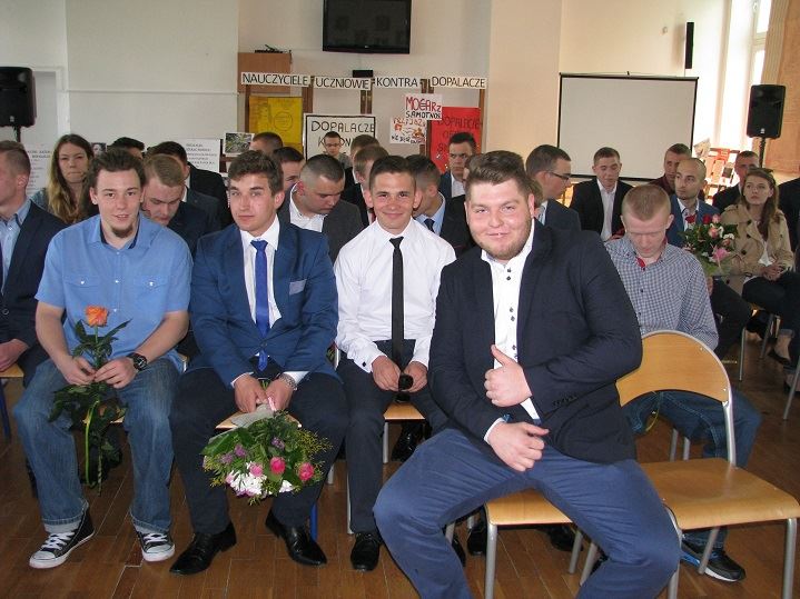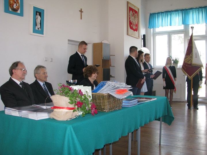 Nagrody otrzymali także najlepsi sportowcy, laureaci konkursów czytelniczych i matematycznego oraz poczet sztandarowy. Wychowawcy wręczyli świadectwa absolwentom. Goście, pani dyrektor i zostali obdarowani przez wdzięczną młodzież pięknymi kwiatami i podziękowaniami. Nie obyło się bez łez wzruszenia podczas sentymentalnego wykonania piosenek „Ostatni raz z moją klasą” i „Ale to już było”. Te cztery lata minęły jak jeden dzień! Będziemy tęsknić za Wami na pewno!