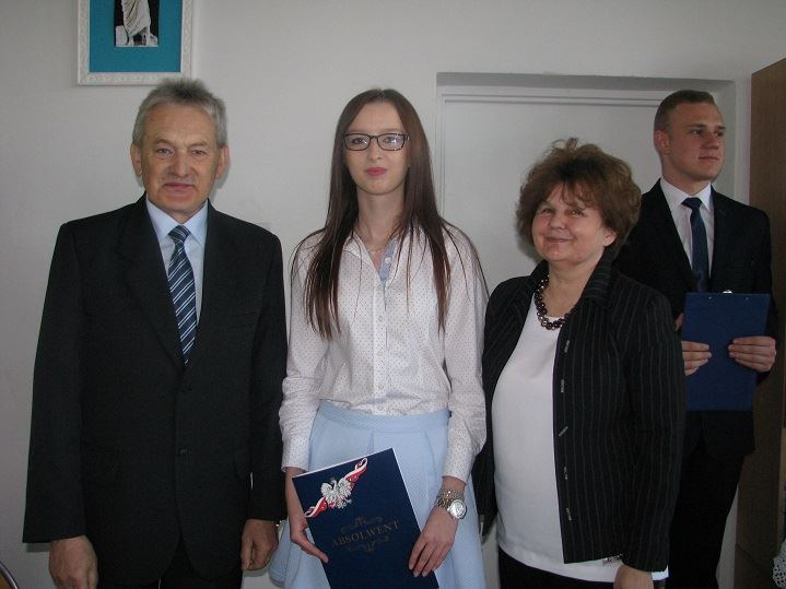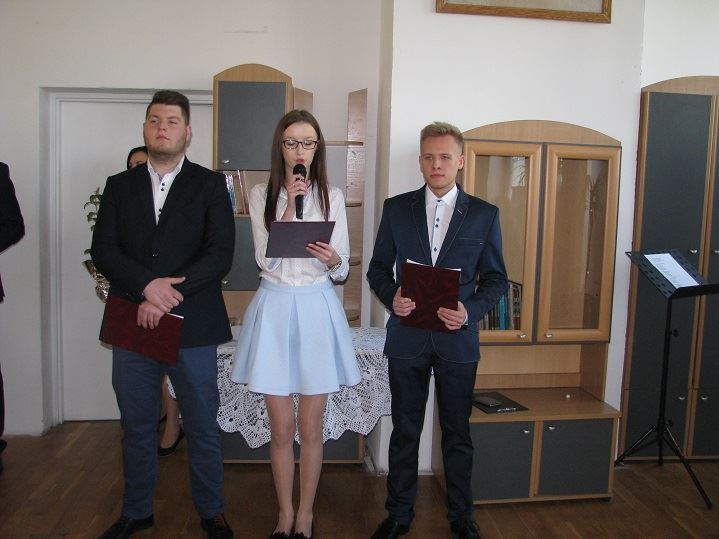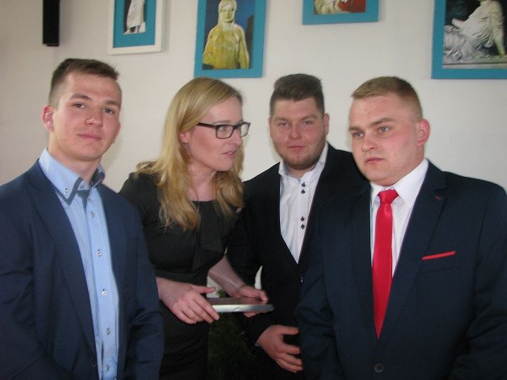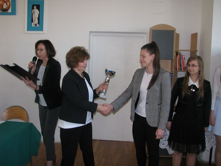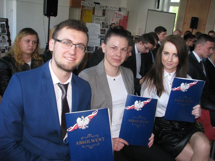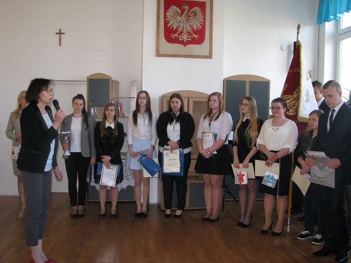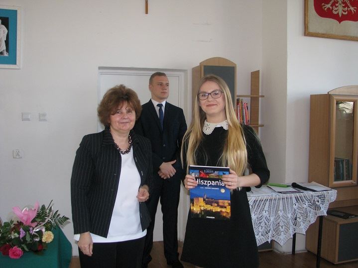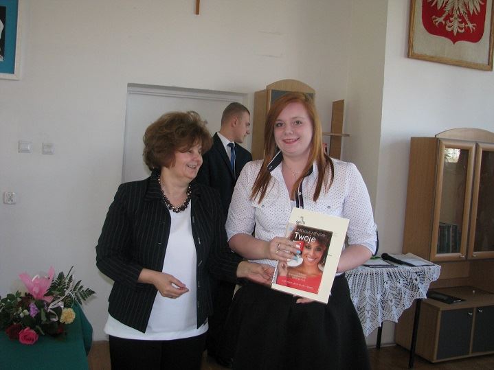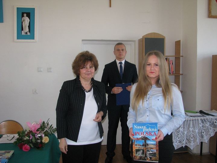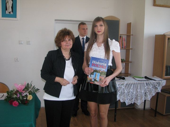 Obecna p. dyrektor Ewa Odolczyk wręczyła nagrody dla najlepszych uczniów - Katarzyny Konarskiej (zdecydowanie najlepsza średnia w szkole), Marcina Jeznacha i Kamila Rudnickiego.