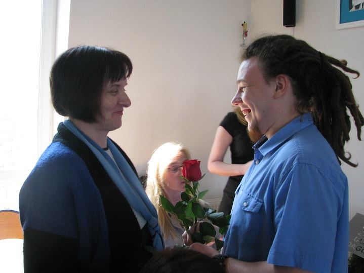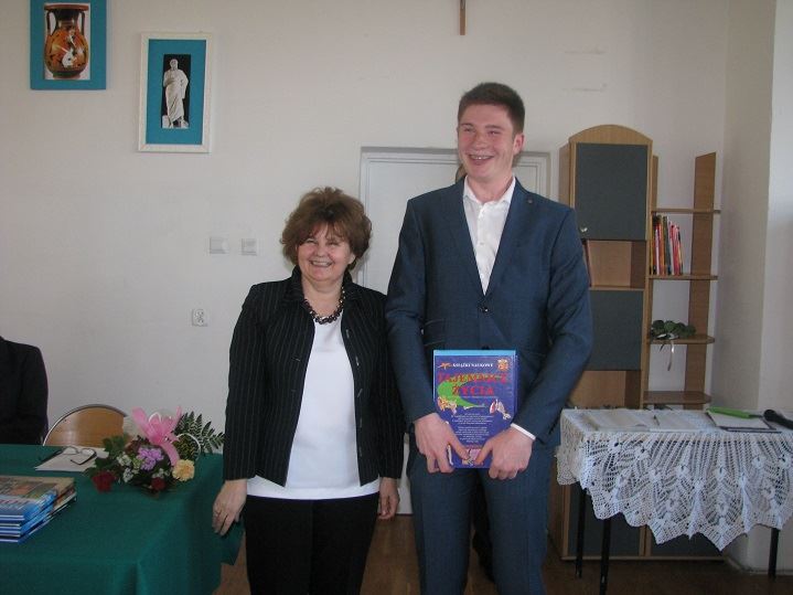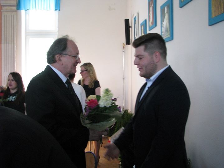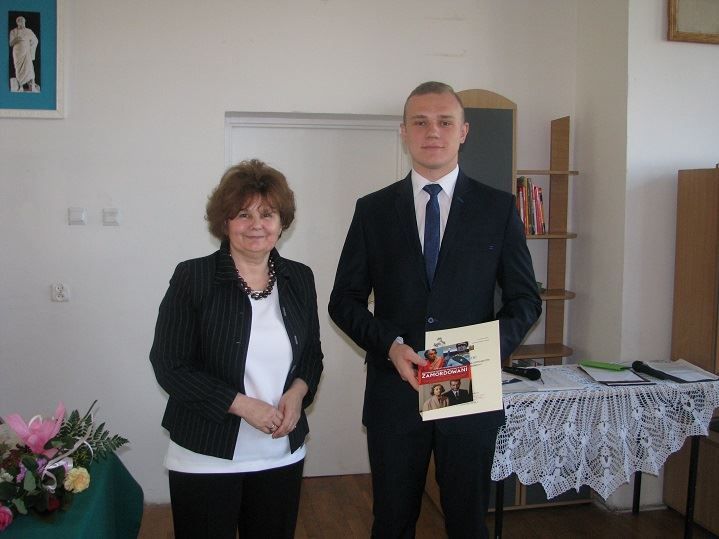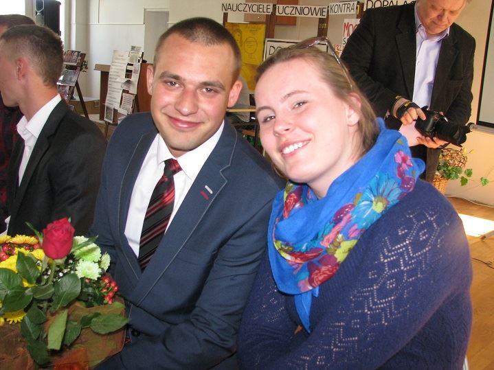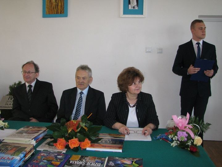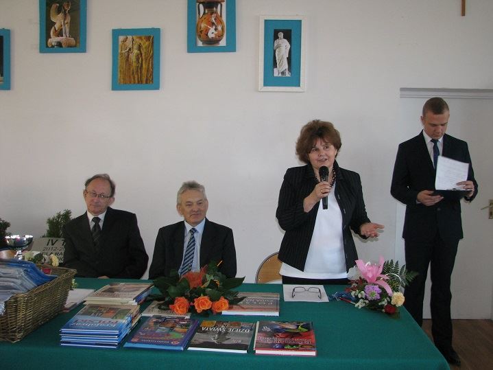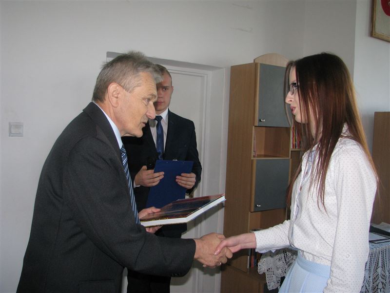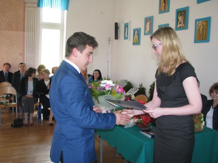Obecna p. dyrektor Ewa Odolczyk wręczyła nagrody dla najlepszych uczniów - Katarzyny Konarskiej (zdecydowanie najlepsza średnia w szkole), Marcina Jeznacha i Kamila Rudnickiego.