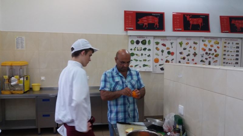 W Dniu Dziecka czyli 1 czerwca klasa II technikum żywienia i organizacji usług - w Zespole Szkół im. Jarosława Iwaszkiewicza w Sochaczewie - na zajęciach gastronomicznych gościła Pana Abdulwahida Alsharafi z Jemenu. Miły gość uczył młodych adeptów sztuki kulinarnej sporządzania popularnej potrawy kuchni jemeńskiej kabsy, czyli aromatycznego kurczaka z warzywami i ryżem basmati. Tajemnicą doskonałej potrawy okazała się mieszanka przypraw z kardamonem, czarnym pieprzem, koprem i czosnkiem oraz mieszanka warzyw. Smak potrawy zaskakująco podbił dodatek drobno siekanej skórki pomarańczy. Całości dopełniał sypki, gotowany ryż basmati. Ciekawostką jest to, że kabsa to potrawa jednogarnkowa.
