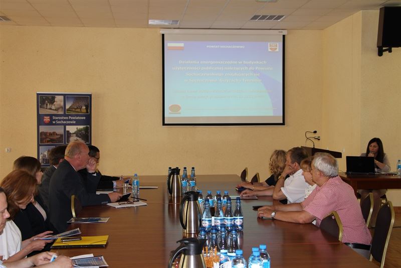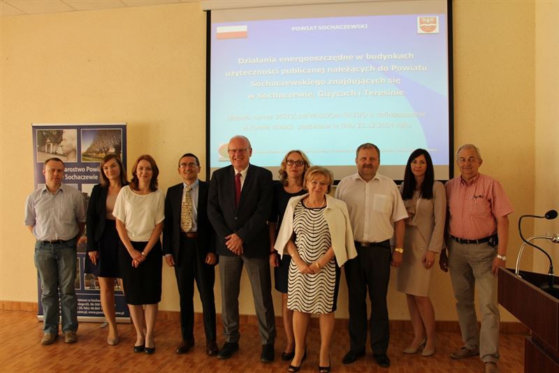 We wtorek, 7 czerwca w miała miejsce wizytacja delegatów z instytucji, które dofinansowały projekt pn. „Działania energooszczędne w budynkach użyteczności publicznej należących do Powiatu Sochaczewskiego znajdujących się w Sochaczewie, Giżycach i Teresinie” oraz projekt pn. „Działania energooszczędne w budynkach użyteczności publicznej należących do Powiatu Sochaczewskiego znajdujących się w Sochaczewie, Załuskowie i Młodzieszynie”. Wśród gości byli specjaliści z Banku Światowego, Departamentu Ochrony Powietrza w Ministerstwie Środowiska oraz z Narodowego Funduszu Ochrony Środowiska i Gospodarki Wodnej. Gospodarzami spotkania byli Jolanta Gonta, starosta sochaczewski, wicestarosta Tadeusz Głuchowski, skarbnik powiatu Teresa Pawelak oraz Jerzy Królik, dyrektor Wydziału Rozwoju, Rolnictwa, Leśnictwa i Ochrony Środowiska w Starostwie Powiatowym w Sochaczewie.