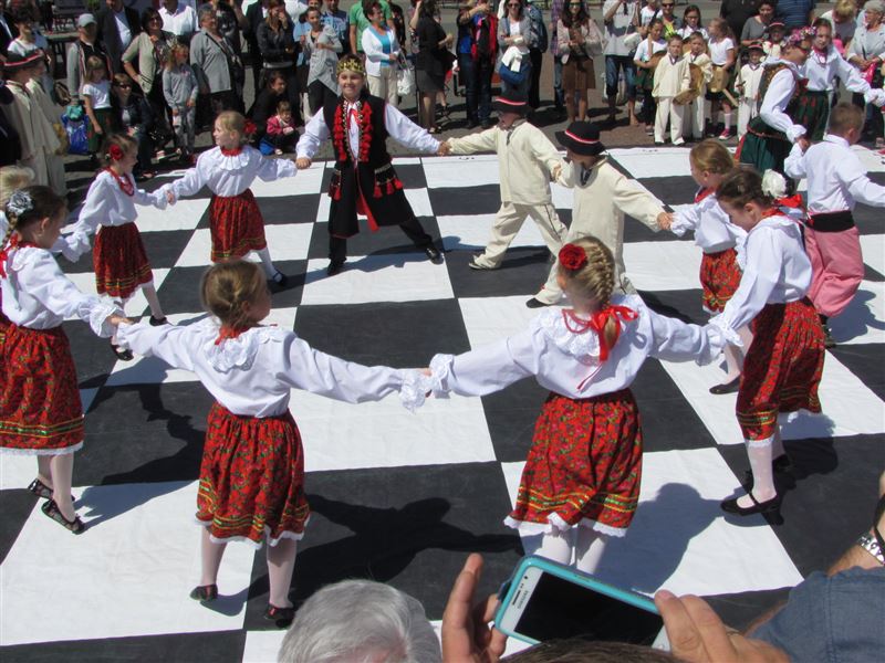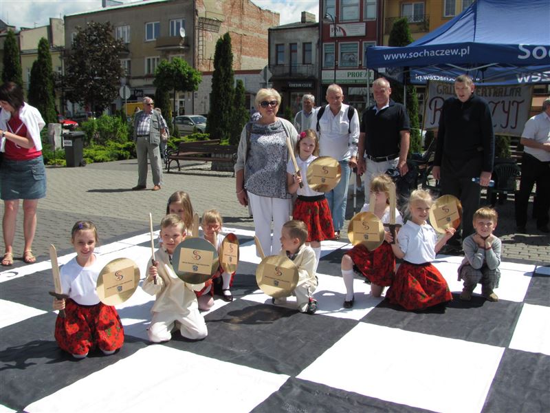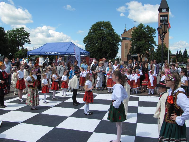 Pokaz Żywych Szachów rozgrywały się na szachownicy o wymiarach 9/9 metrów. W roli figur wystąpiły dzieci z Zespołu Folklorek i dzieci ze Szkoły Podstawowej nr 3.