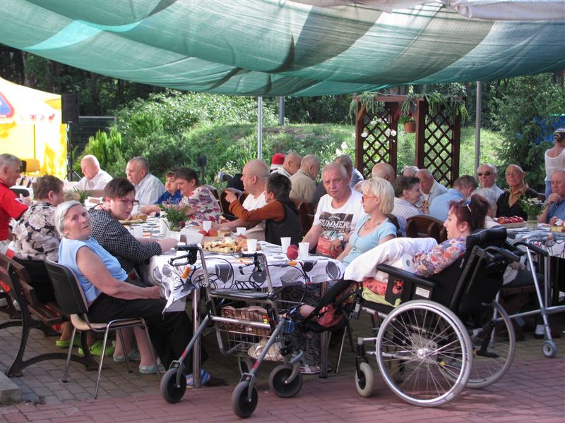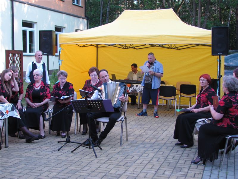 Aura w środę 22 czerwca dopisała. Wspaniałe słońce i wysoka temperatura towarzyszyły nam od rana, jak na początek lata przystało. Przygotowania do imprezy, która zaplanowana była na popołudnie trwały od wczesnych godzin porannych, tak aby wszystko było dopięte na ostatni guzik . Mieszkańcy nie mogli doczekać sie zapowiedzianego występu i przybycia gości. Z niecierpliwością czekali na zapowiedzianą imprezę. Ubrani letnio, kolorowo przygotowani byli na tę okazję. Widać było podekscytowanie i radość.