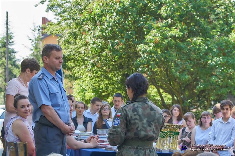 Pani Dyrektor dziękowała także za kolejny dobry rok współdziałania partnerom szkoły - 3. Warszawskiej Brygadzie Rakietowej Obrony Powietrznej, Komedzie Powiatowej Policji, Komendzie Powiatowej Państwowej Straży Pożarnej oraz absolwentowi szkoły - Mateuszowi Samborskiemu, który współpracuje z klasami mundurowymi . Kilka słów skierowała do odchodzącego przewodniczącego Rady Rodziców pana Andrzeja Wierzbickiego dziękując za czteroletnią owocną współpracę.
