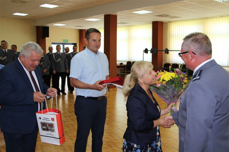 Życzenia pomyślności i podziękowanie za dotychczasową współpracę insp. Januszowi Patury złożyła m.in. starosta Jolanta Gonta wraz z wicestarostą Tadeuszem Głuchowskim i Andrzejem Kierzkowskim, przewodniczącym Rady Powiatu.